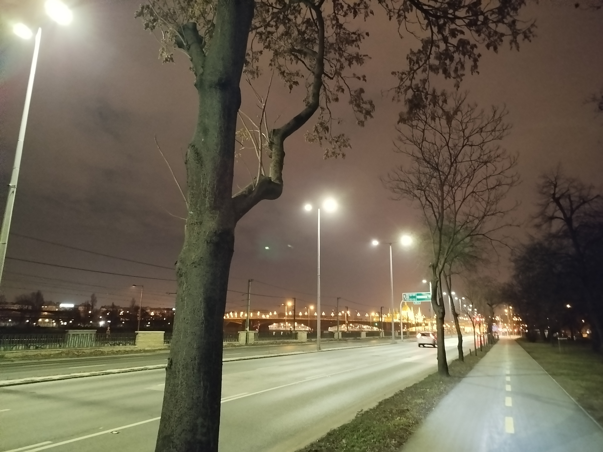 A felsőrakparton a forgalmi táblától északra lévő lámpa pár kiégett.