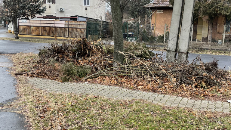 Wekerlén az egyik sarkon egy halom zöldhulladékot raktak ki.