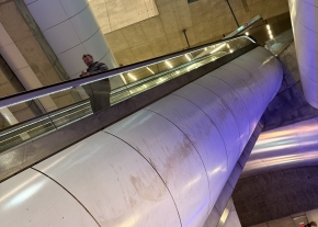 Jól láthatóan felületes a takarítás és nem utólagos szennyeződések láthatóak a burkolatokon. A mozgólépcsők könnyen elérhető részein is jelentős kosz díszeleg. Állandóan fennálló probléma, ami takarítások után is megfigyelhető.