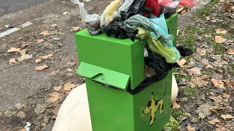 kutyaürülék-gyűjtőláda ürítésére hívja fel a figyelmet, a Zuglói