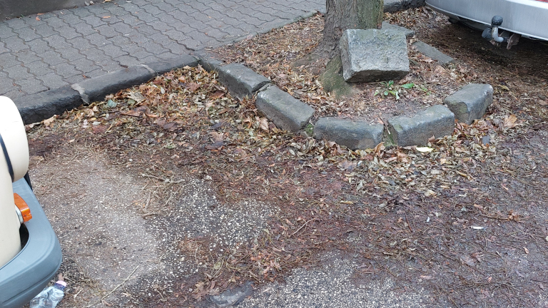 Az utcában sok a fa. Sajnos évek óta csak egyszer szedik össze a leveleket ősszel. Azóta rengeteg lehullott levél hónapok óta a csapadék miatt több centiméter vastag sárréteggé alakul. Az úttest, parkoló javarészét elborìtja. Az esővíz gyűjtő csatornafedeleket is jórészt eltorlaszolja a sáros levél.
