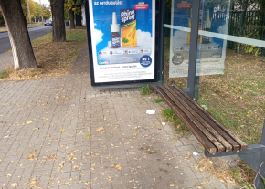 A megállók az Új köztemető előtt találhatók! Megkérném önöket hogy gondoskodjanak a fa idomok cseréjéről! Előre is köszönöm!