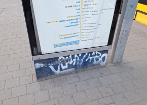 „A megállótáblát megtisztították, viszont a megállókiosztást részletező információs tábla lábazata változtalan maradt.”