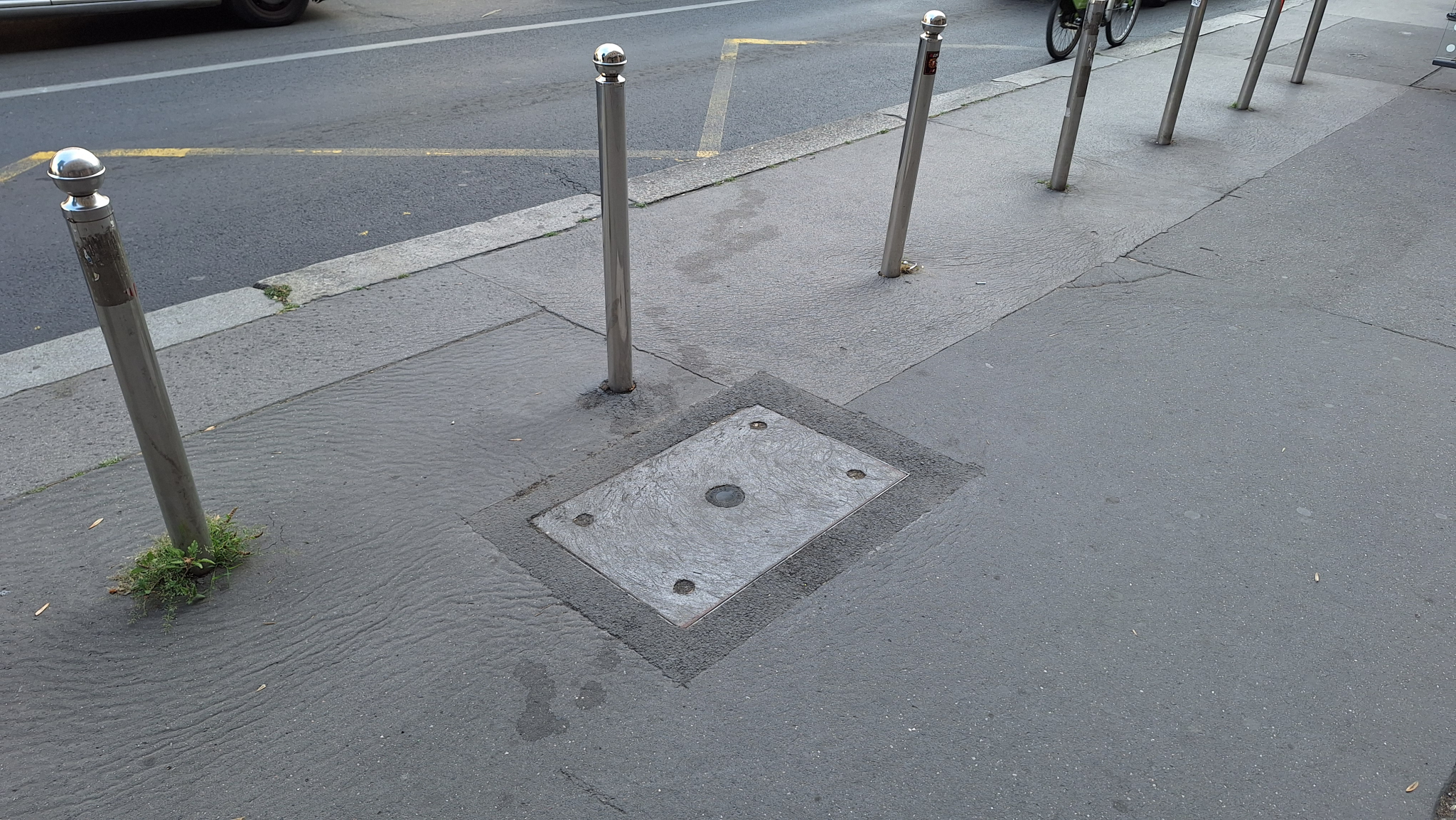 A 7-es busz Uránia megállójában, illetve amögött van két elég rossz állapotban lévő aknafedél.