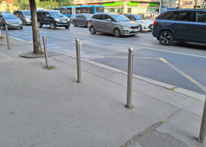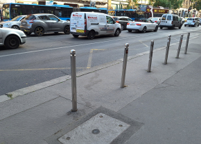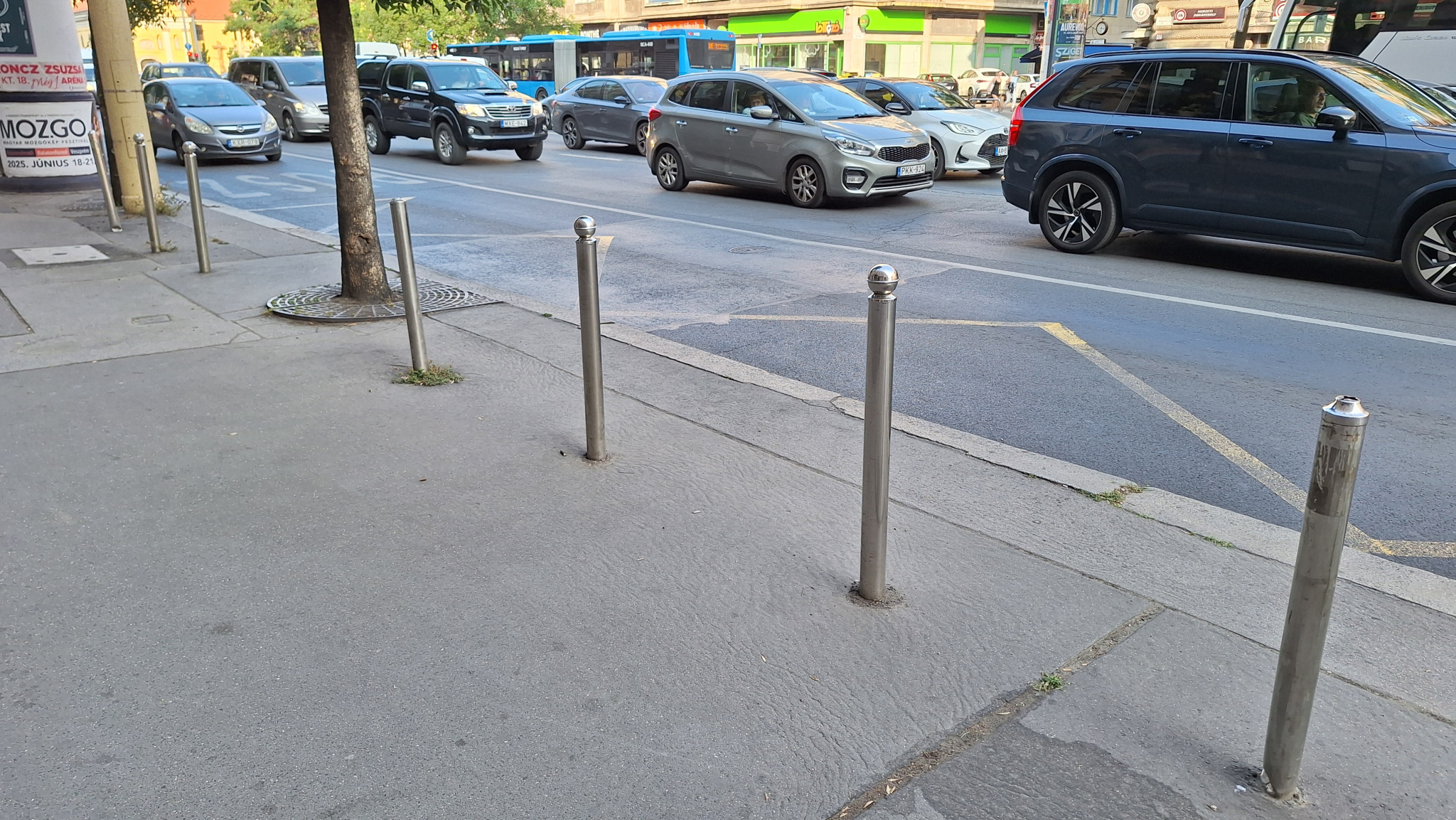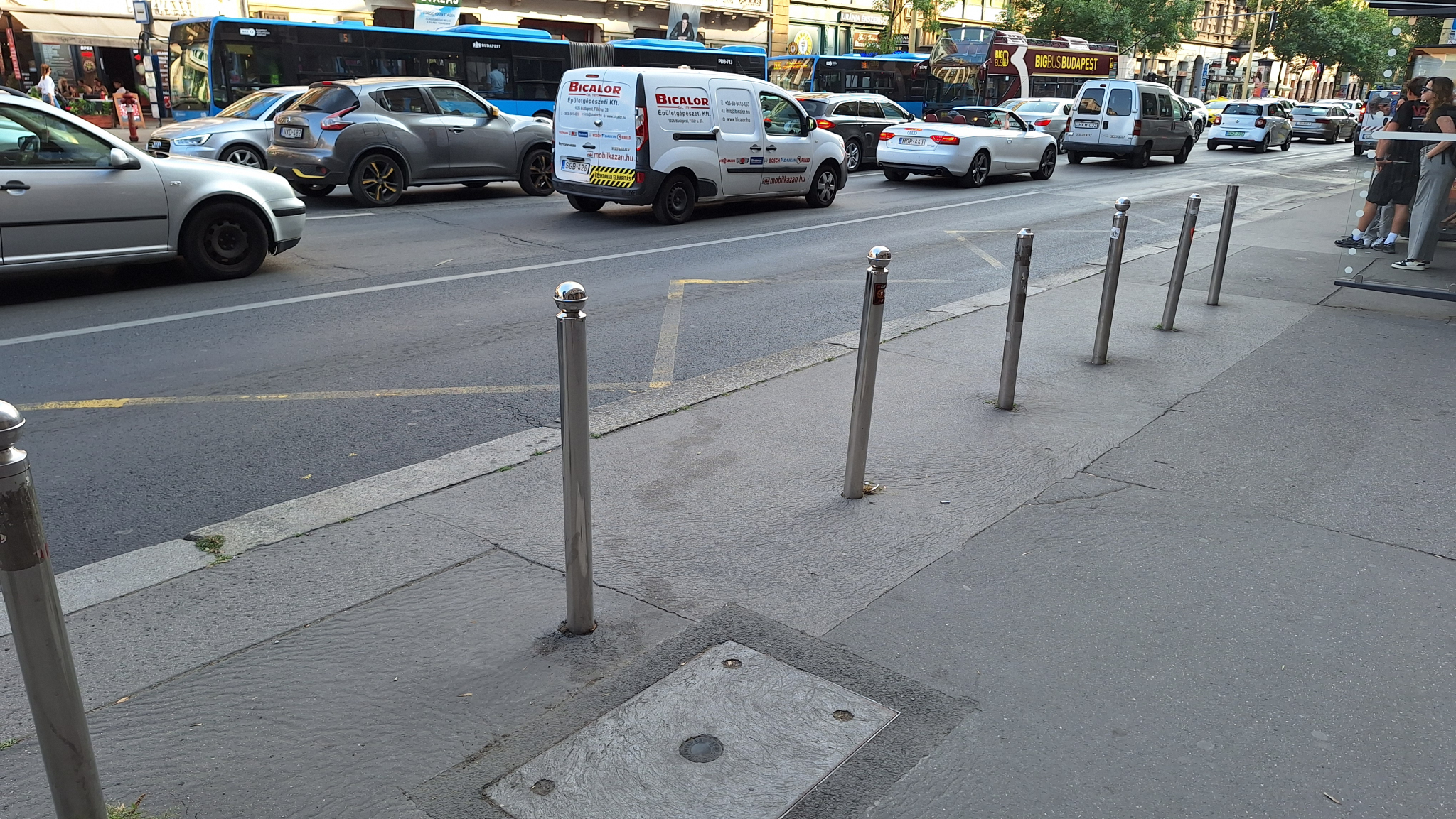 A 7-es busz Uránia megállójában kidöntöttek egy pollert, illetve több darab is hiányzik.