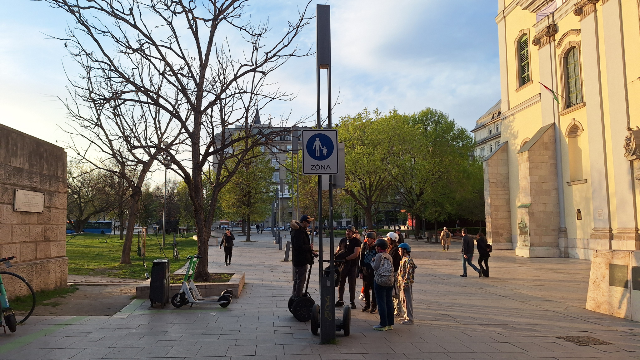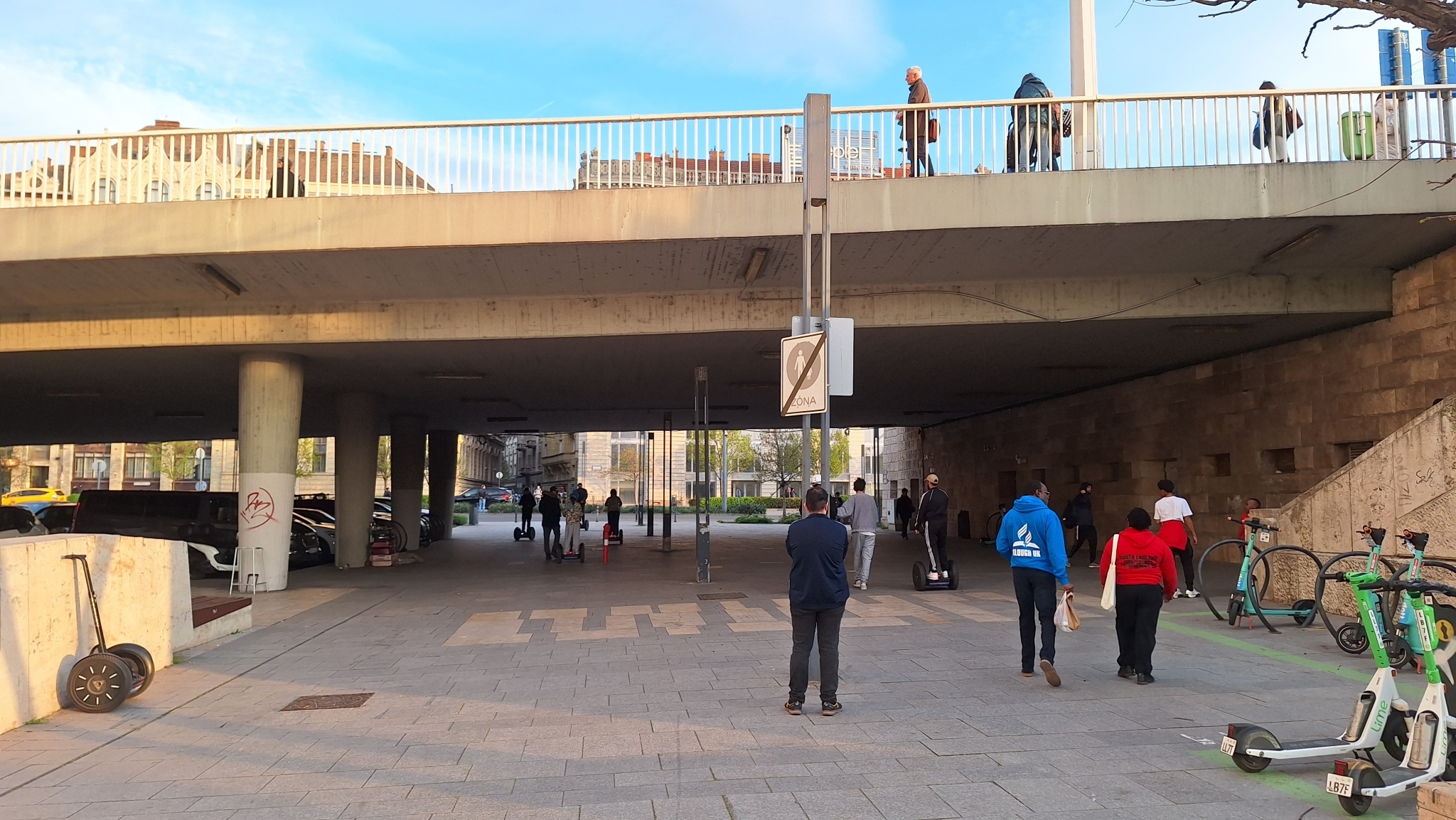 A Március 15. téren, majdnem a híd alatt az egyik lámpaoszlopra van szerelve két tábla.