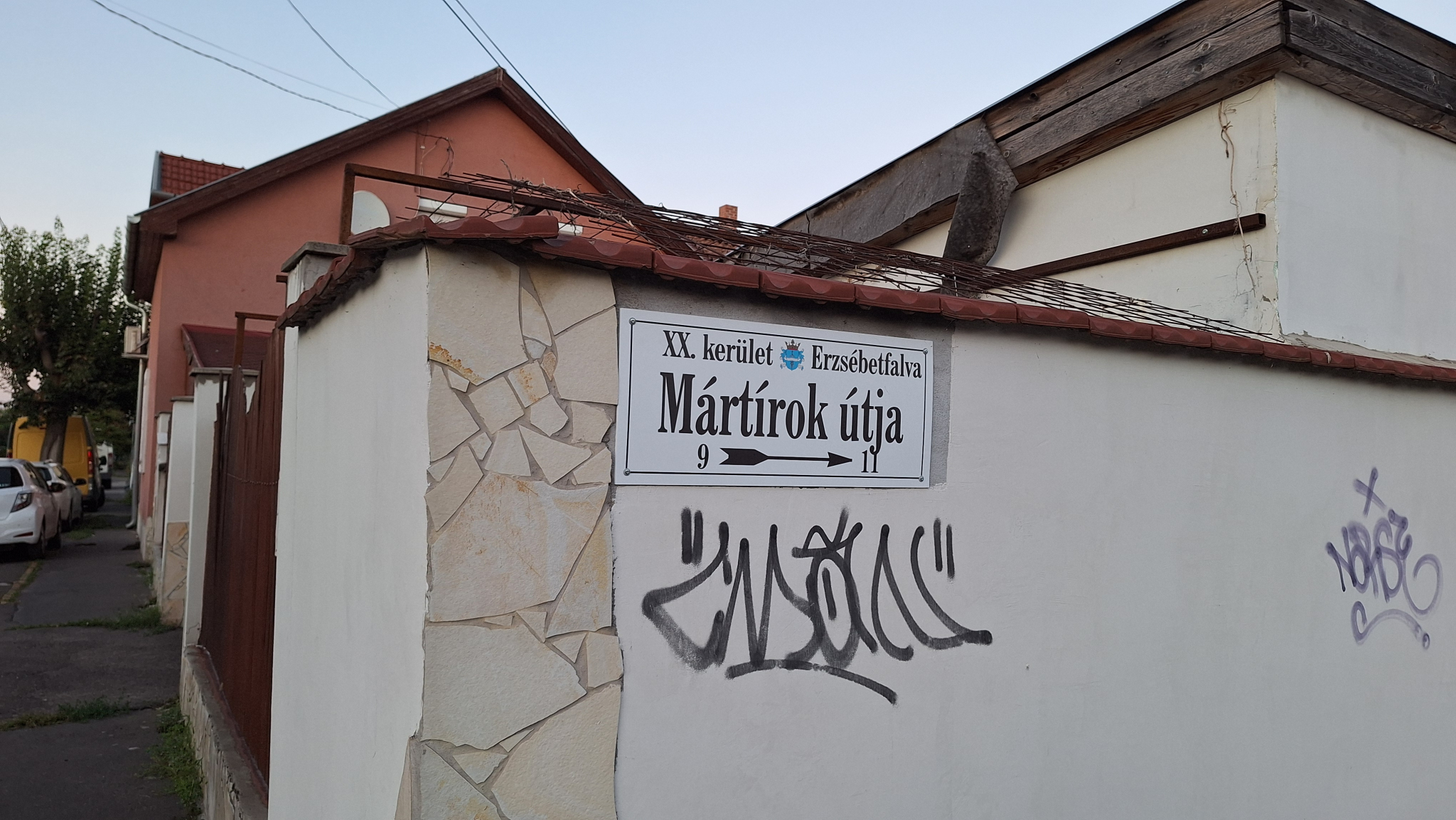 A Mártírok és Tuba utca sarkán hiányzik egy utcanévtábla.