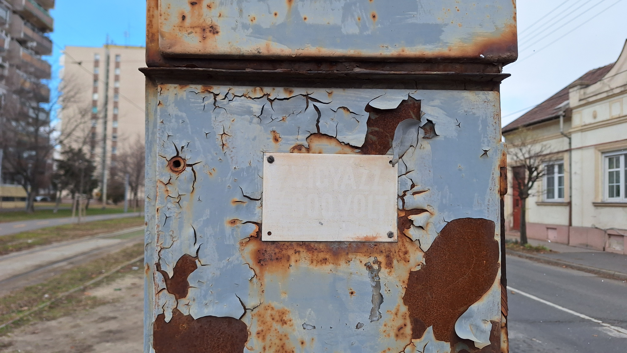 A Török Flóris utca és Bíró Mihály utca sarkánál lévő felsővezetéktartó oszlopra szerelt szekrény erősen rozsdás, kérném javítását.