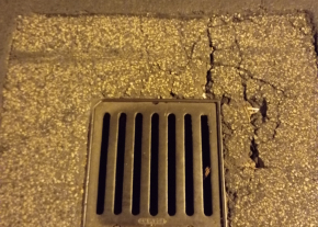 Teljesen eldugult csatorna (Batthyány utca buszmegálló)