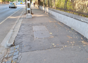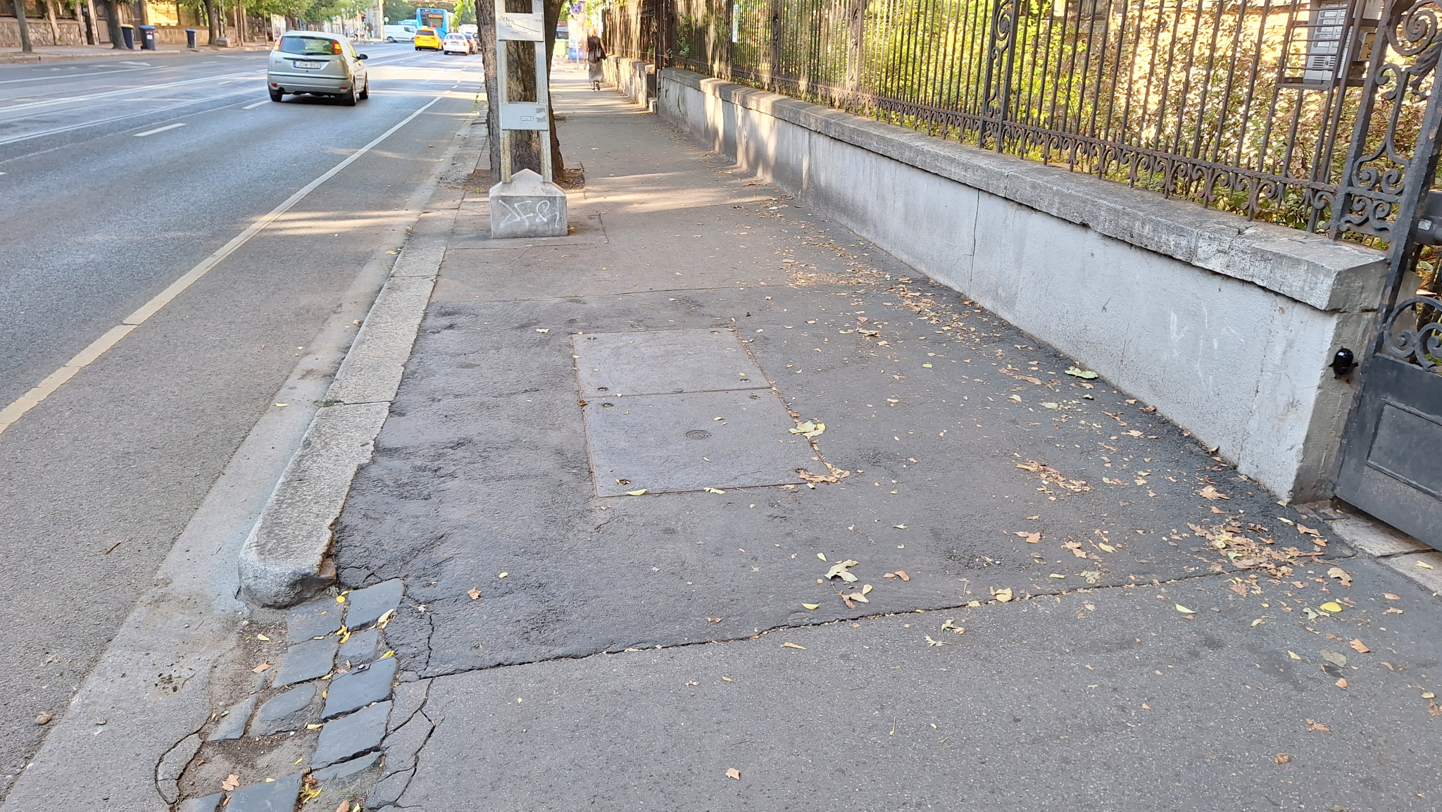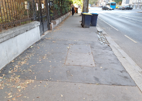 Törött, rossz állapotú fedlap a Thököly út 86 előtt. Kérem javítsák!