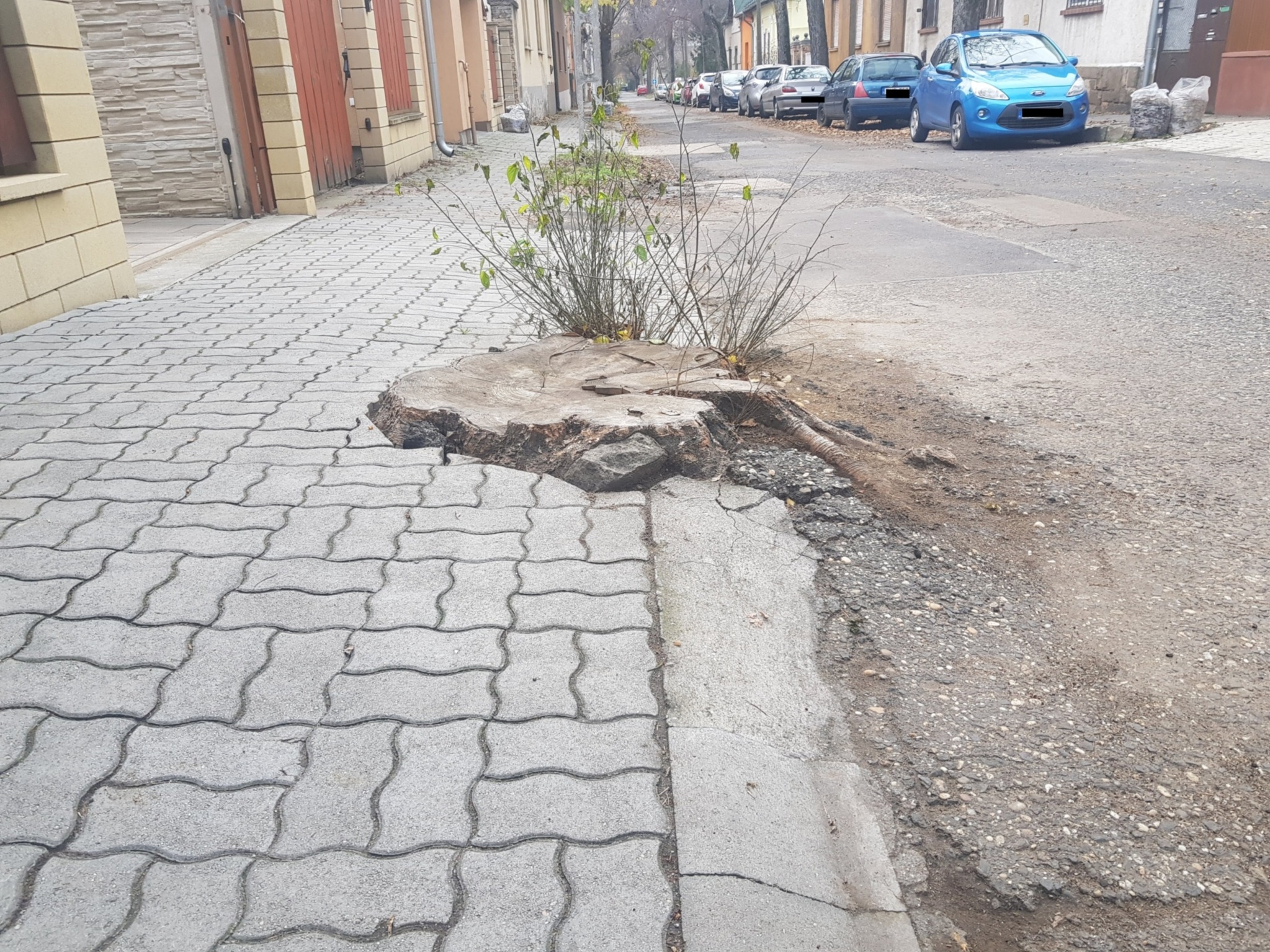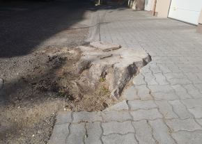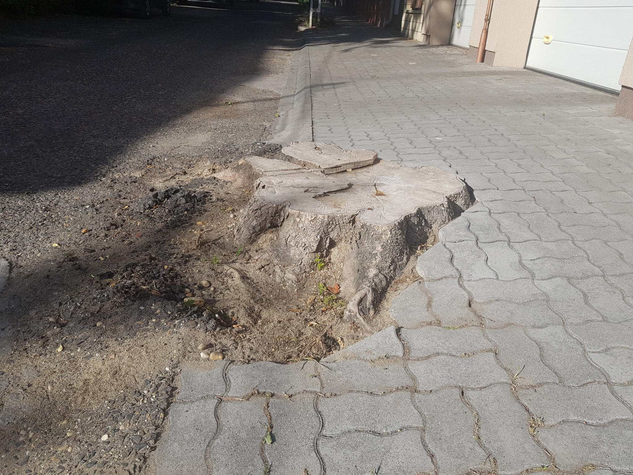 A problémát egyetlen módon lehet megoldani: a tuskó le kell maratni. Szerintem ez nem időjárásföggő, nem értem ezt miért hagyták így ott.