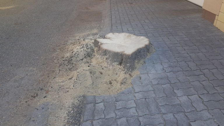 Társaságunk a tuskót talajszintbe vágta, a tuskómarást pedig a későbbiekben tervezzük elvégezni. A fa helye