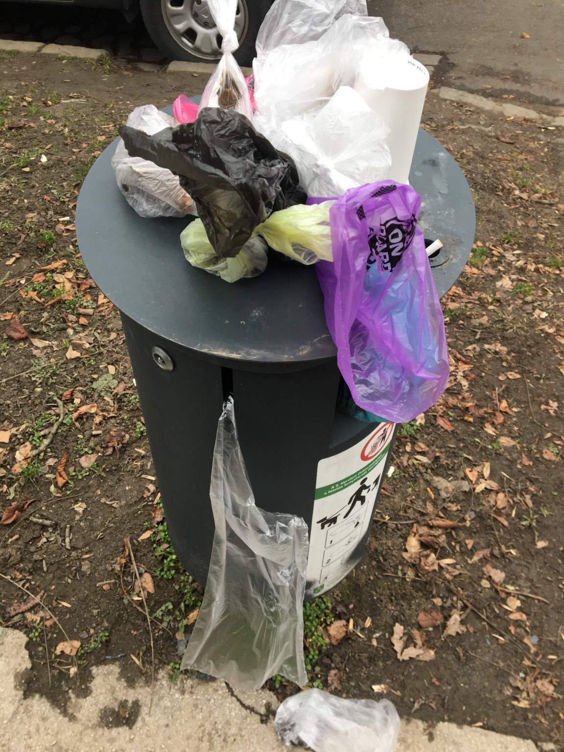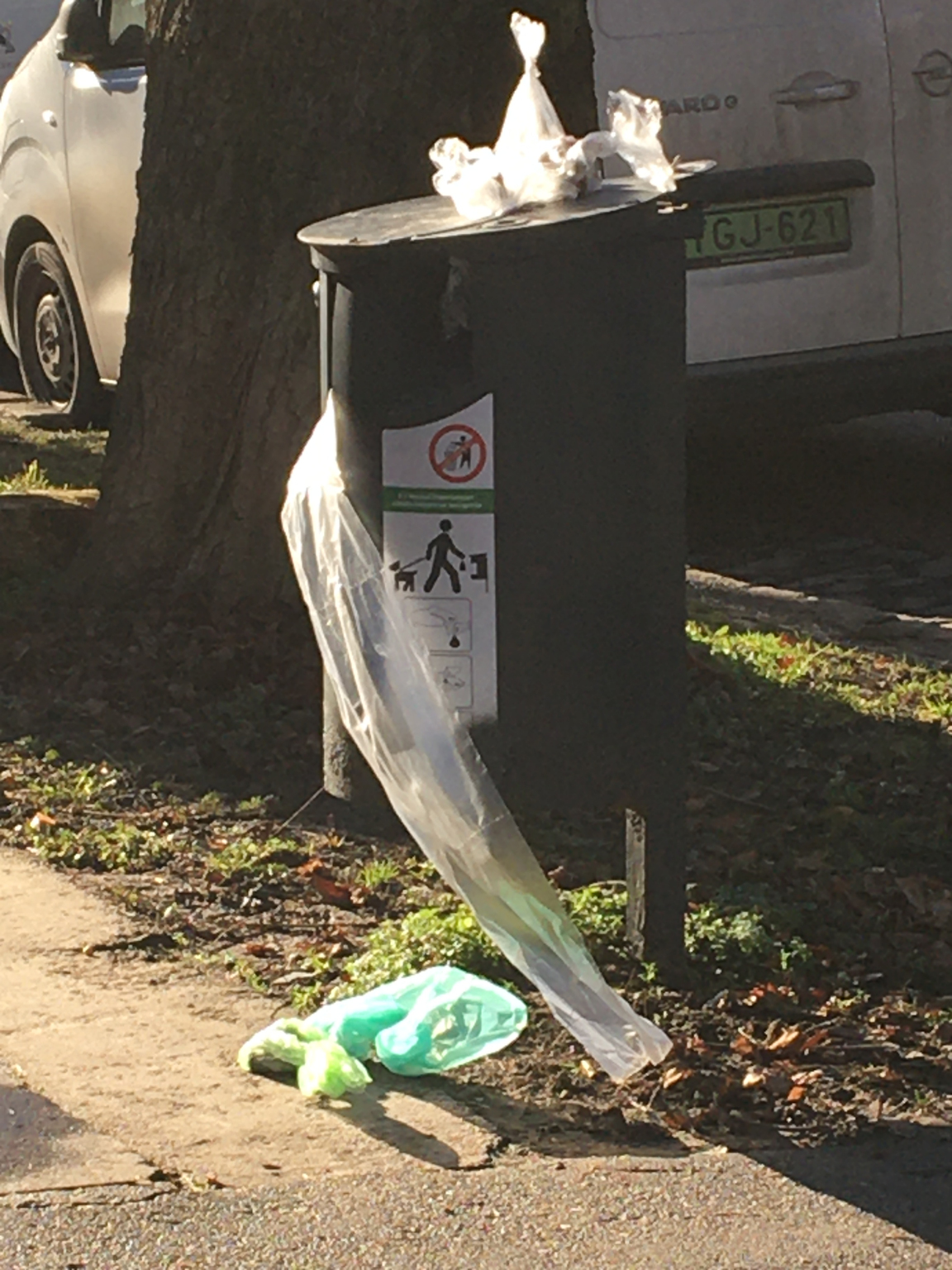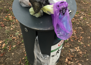 Túltelítődött a szemetes, az ürülékes zacskók a tetején vannak elhelyezve.