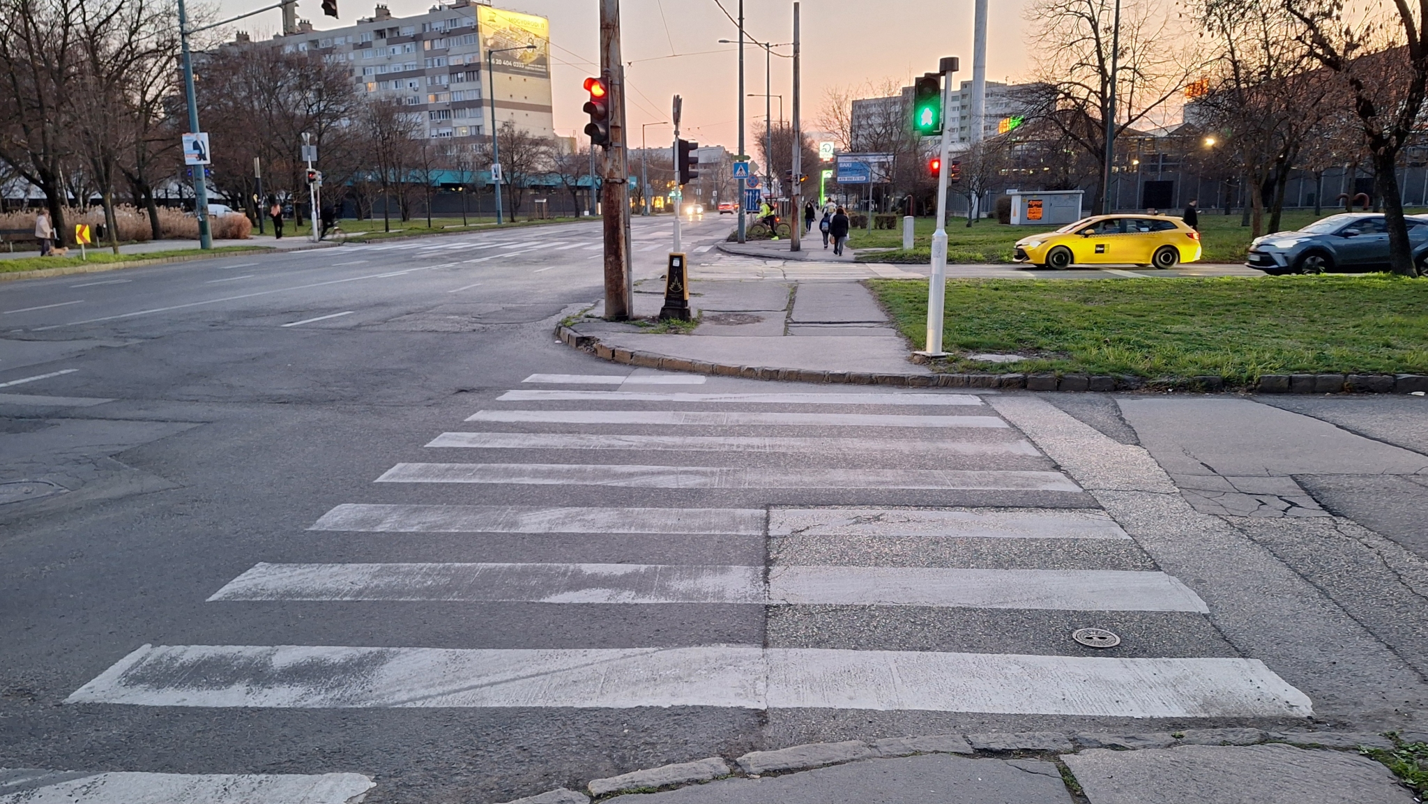 A Forgarasi út / Bagolyvár utca és a Fogarasi út / Róna utca kereszteződésekben erősen le vannak kopva a zebrák