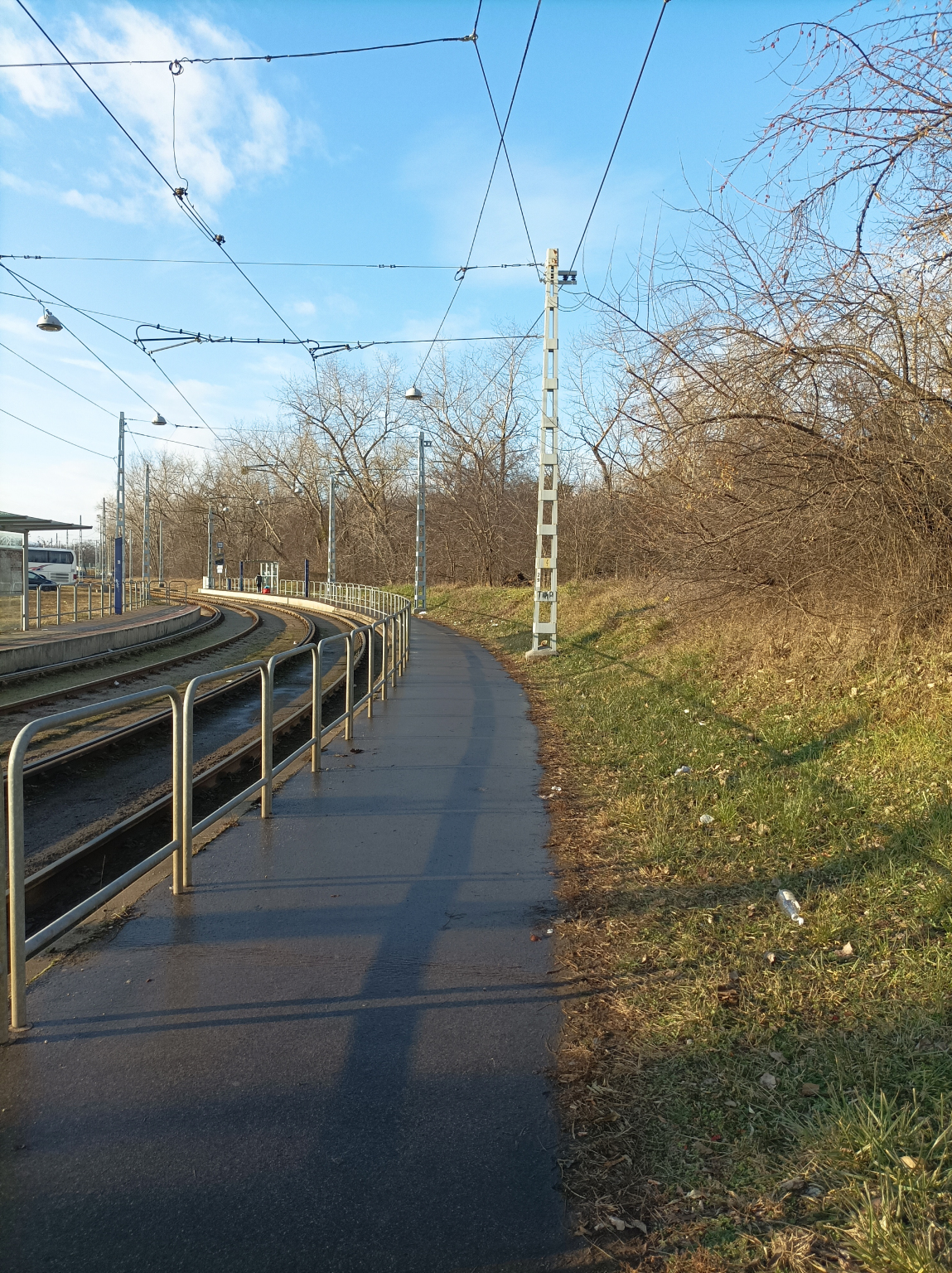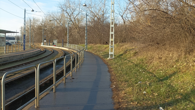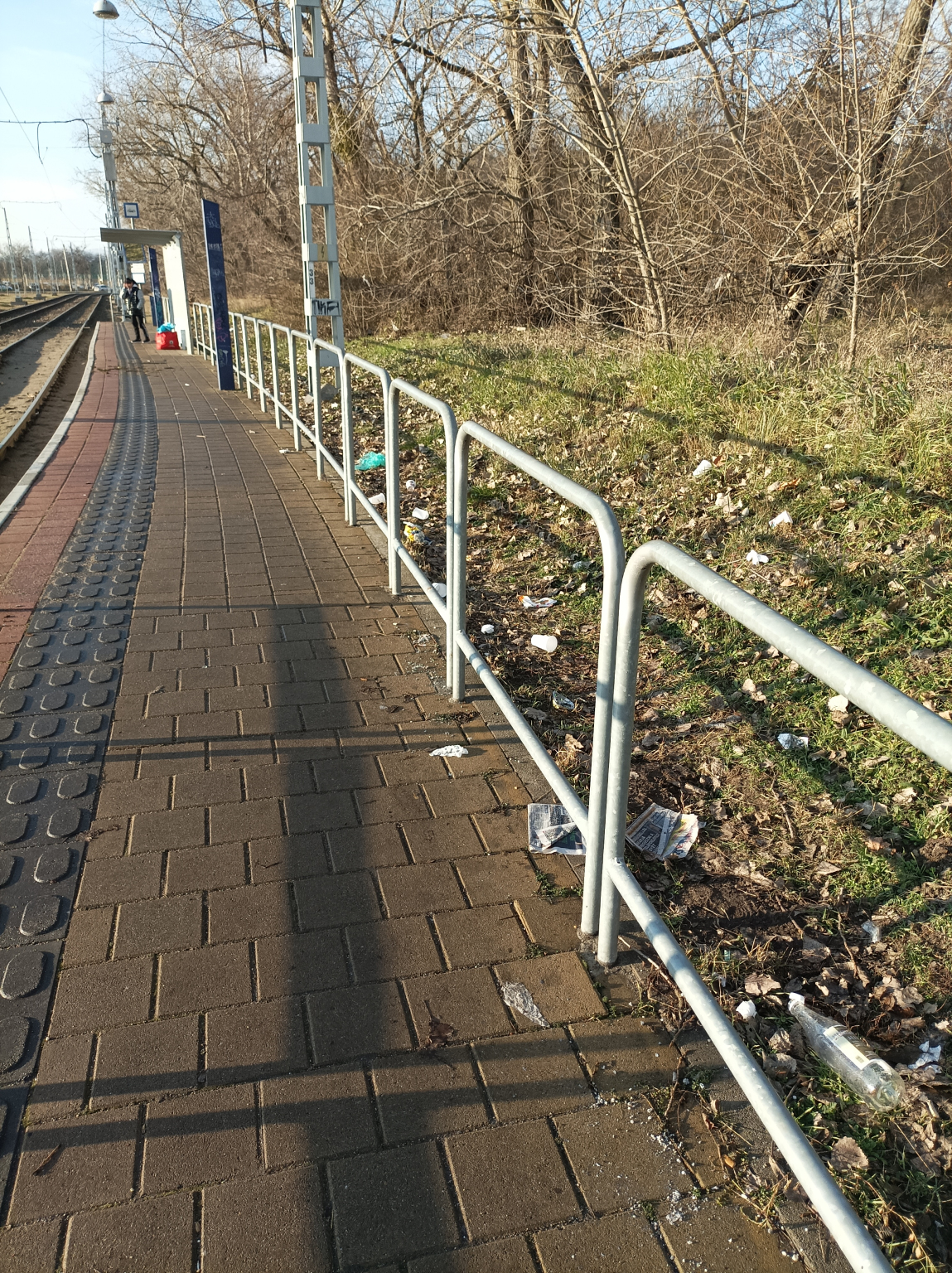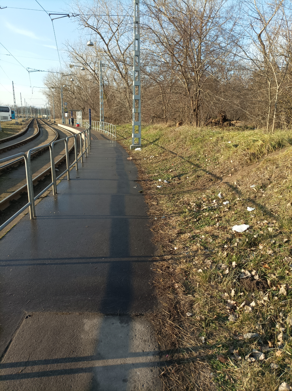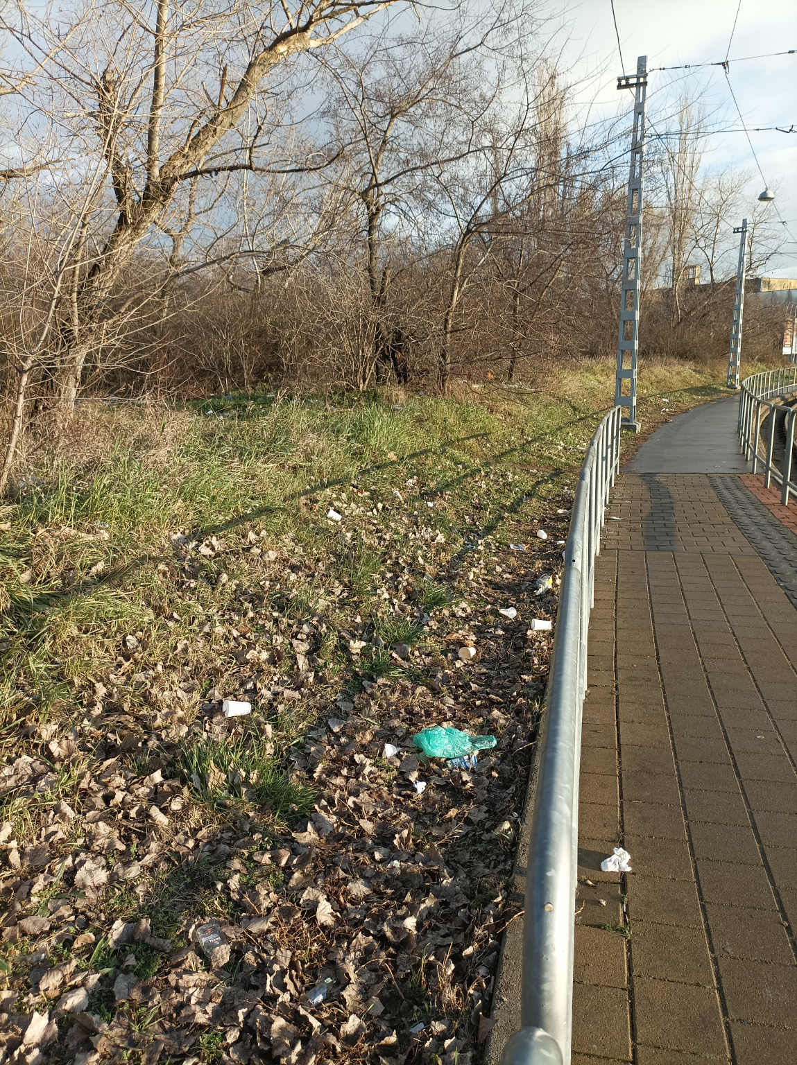 A Terebesi utcai villanosmegálló peronja mögötti zöldterületen nagyon sok az eldobált szemét. Látszik, hogy senki nem takarítja, csak esetenként a megállót.