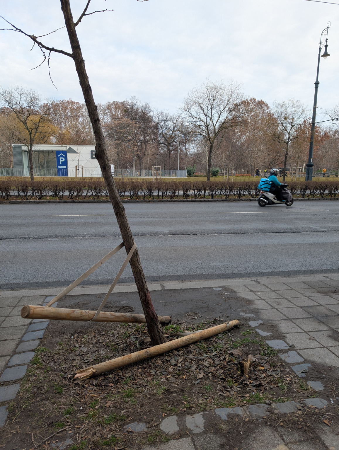 Kérjük helyezzenek ki újakat, a parkoló autók így rendszeresen nekimentek a facsemetének.