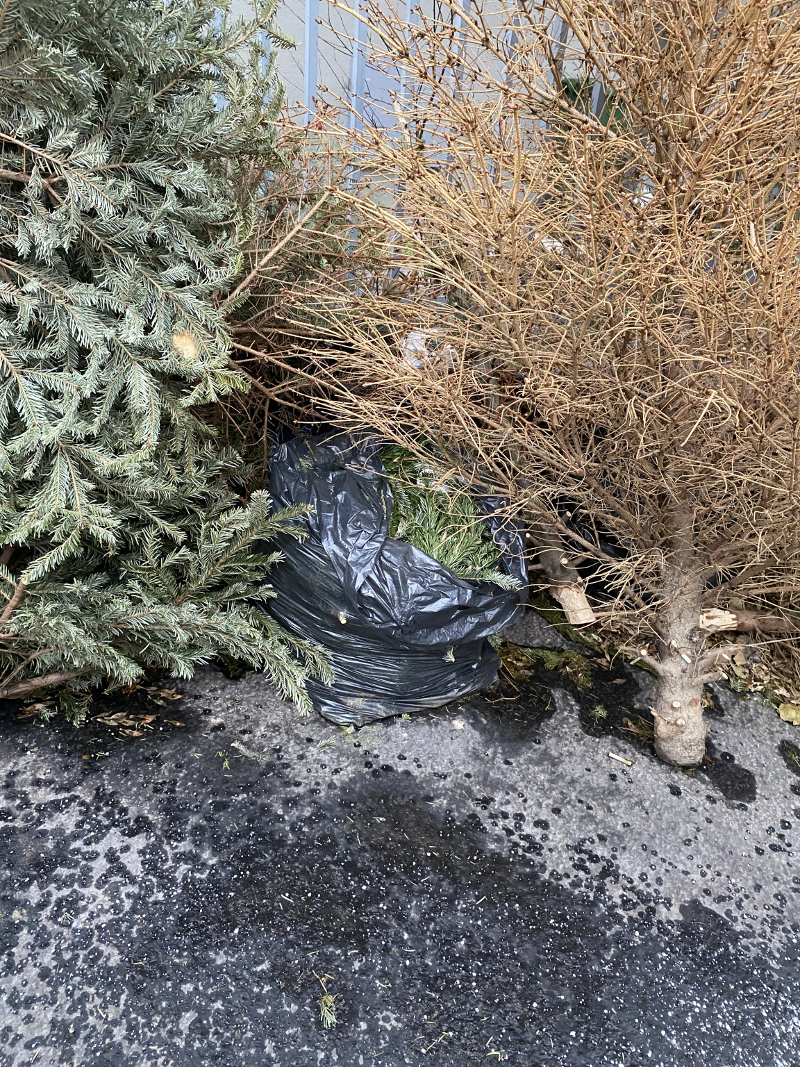 Csalogány utca felső szakaszán és a Jurányi utca sarkán kihelyezett fenyőfákat nem szállították el.