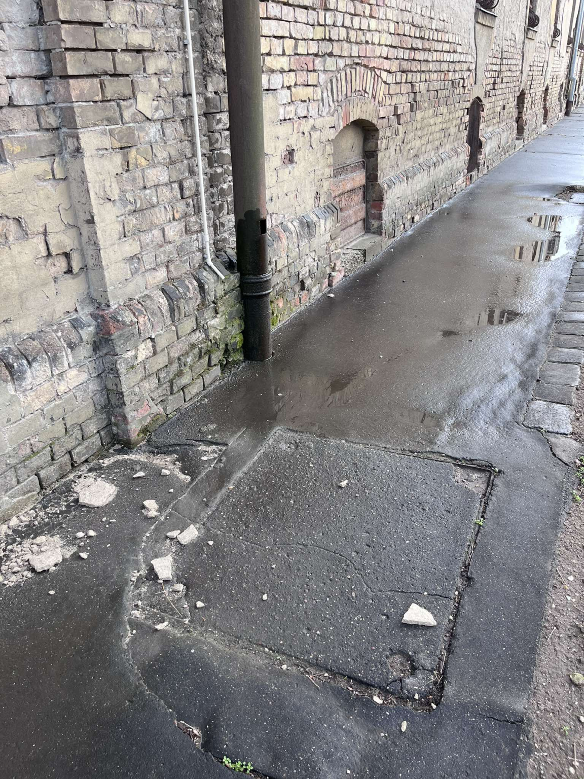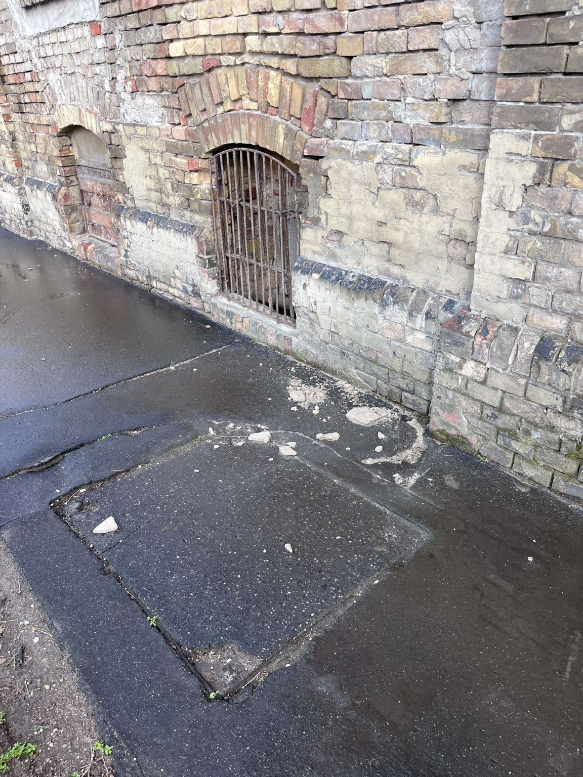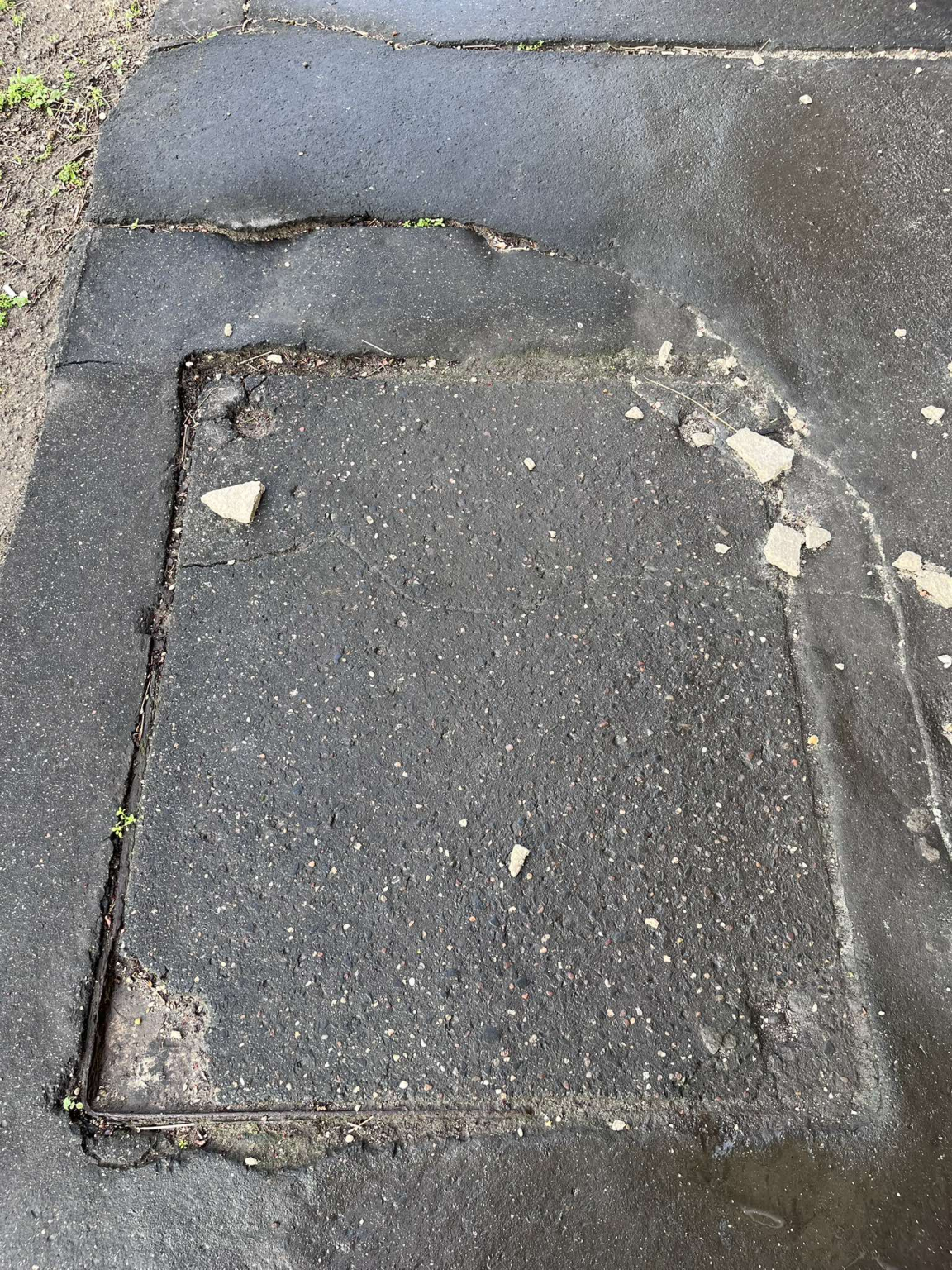 Megsüllyedt , hiányos tönkrement fedlap