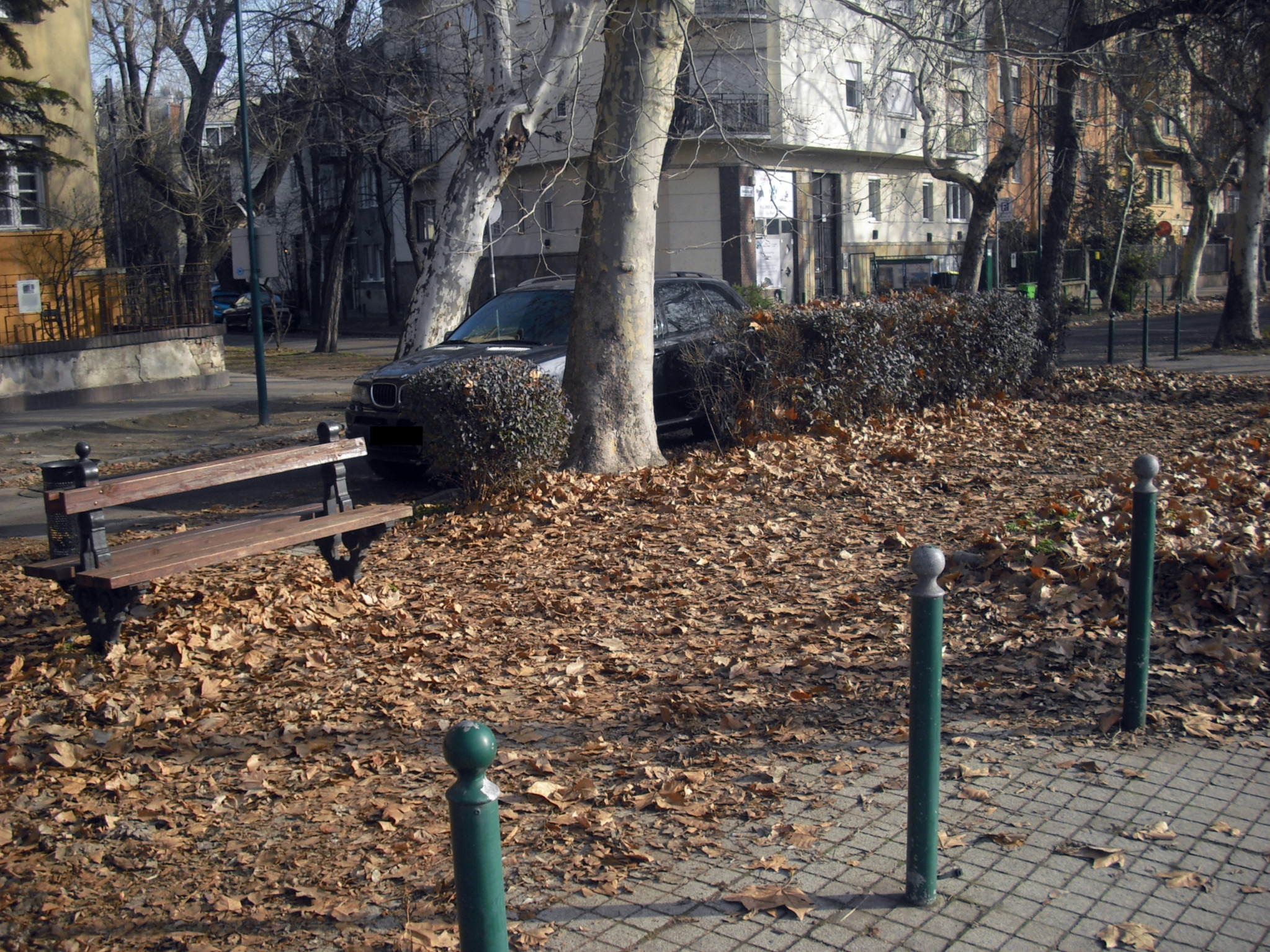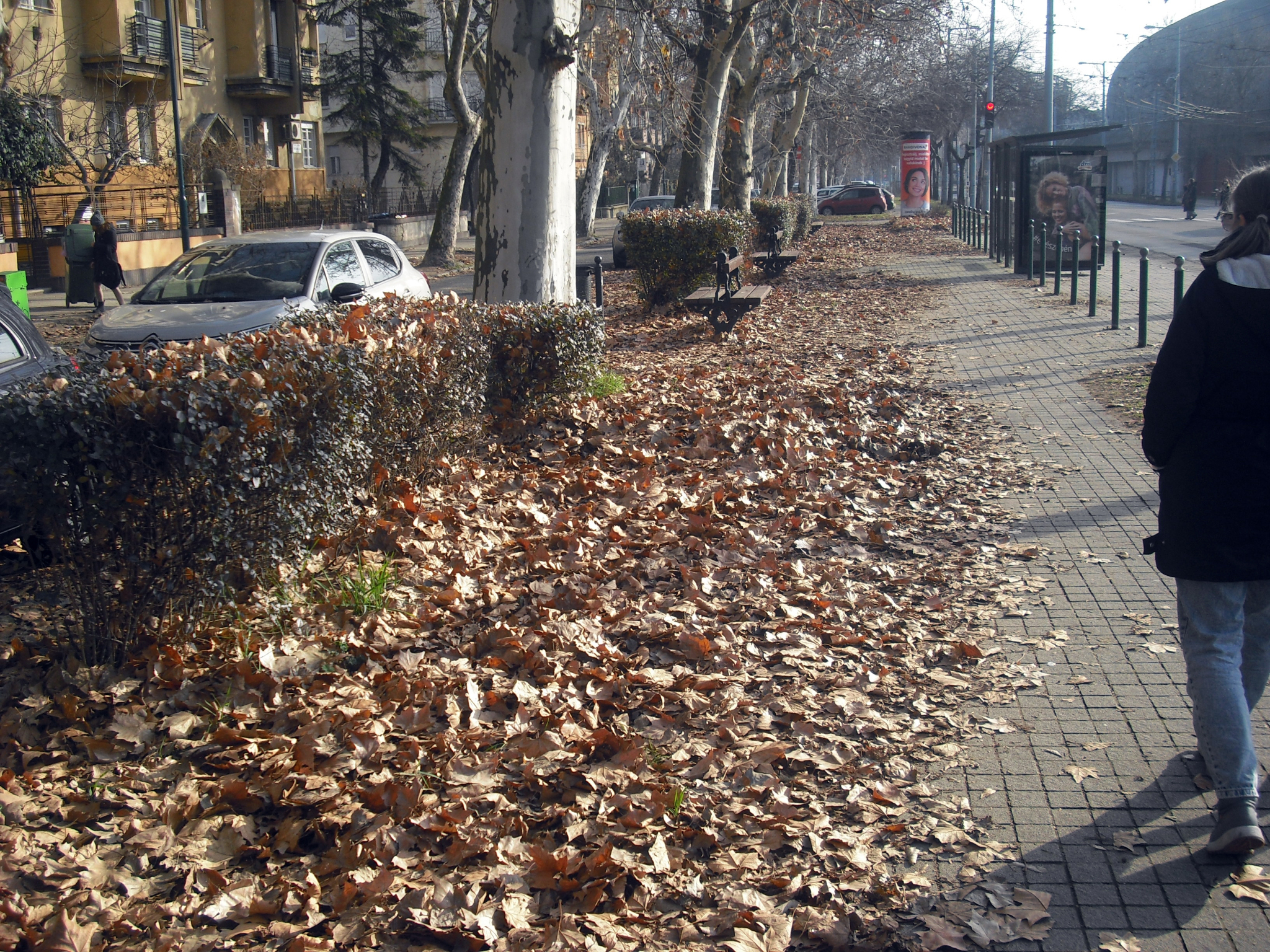 A fotókról látható, hogy a környékbeli házak mindannyian megteszik a rájuk eső jogszabályi feladatot, így tisztán tartják, söprik és gereblyézik a járdát és az úttestig tartó zöld szakaszokat. Ennek folytatásában, a közfenntartású részeken (a parkolósávokban, az úttesten, illetve - ahol van - a szervízúton túli parkolókban és járdákon) azonban ugyanezt nem teszik meg ezen területek fenntartói. Az is látható, hogy a parkolósávokban annyira régen gyűjtötték össze a lombot, hogy komposztálódott, így sok helyen már több centiméter vastagságú termőföldréteg alakult ki az úttesten. Megjegyzendő, hogy ezen, takarítatlan parkolósávok amúgy fizetősek, az autósoktól pénzt kérnek a használatukért.