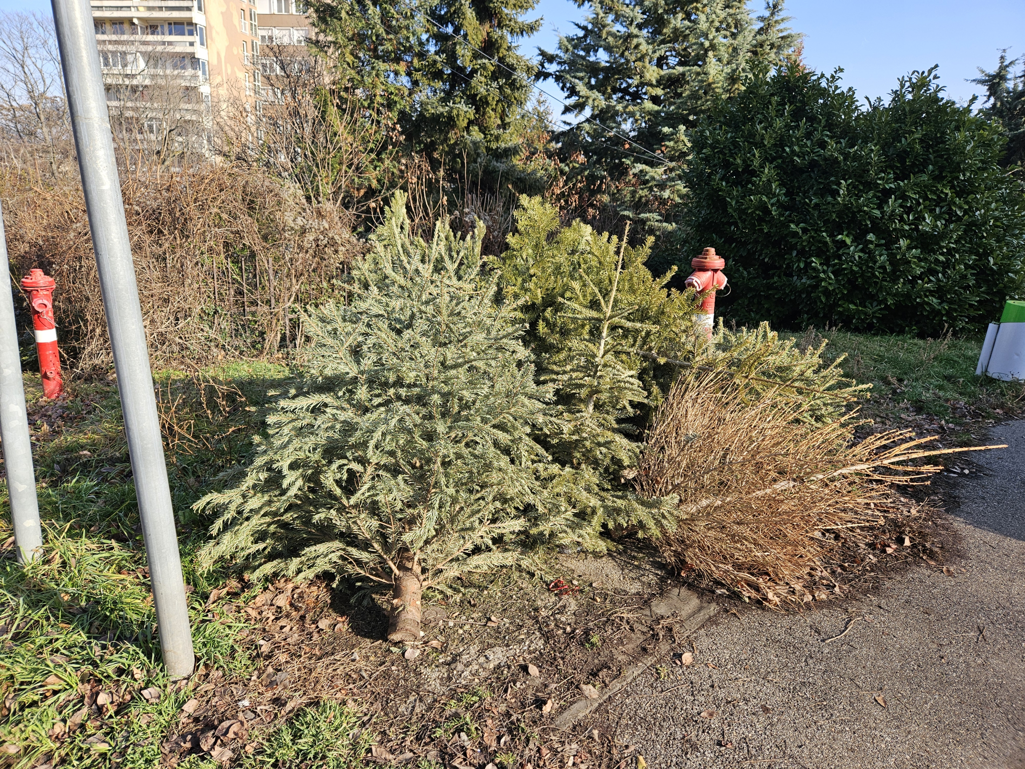 Szeretném kérni a 2 rakás kidobott karácsonyfa elszállítását a Nógrádi utca és Nógrádi köz sarkáról.