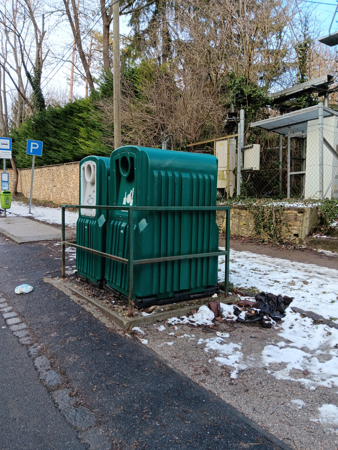 A 65-ös busz Fenyőgyöngyei megállója mellett van egy üveg kukasziget. Sajnos folyamatosan szemét lerakónak is használják a területet, állandó jelleggel van kommunális hulladék az üveges kukák mellett. Kérem szíves intézkedésüket. Köszönettel, Biri Edit