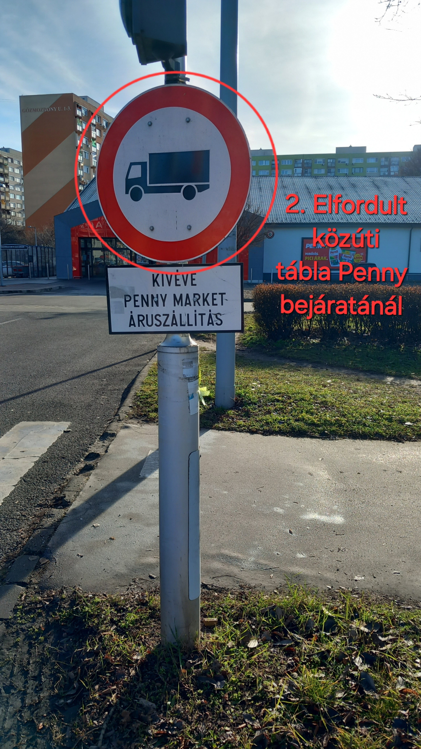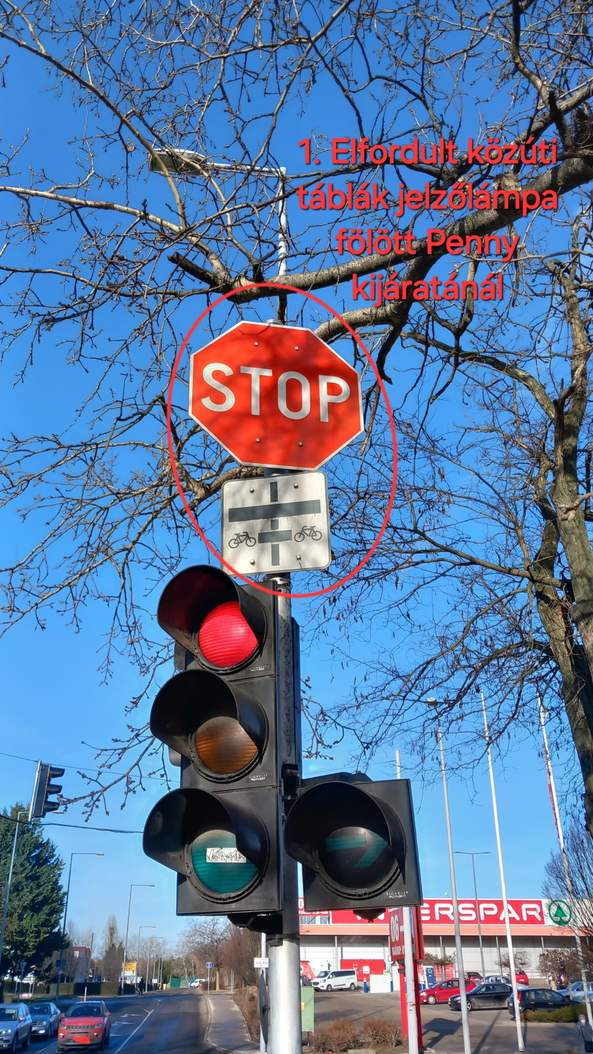 A Sibrik Miklós út, Penny kijáratánál a jelzőlámpa fölött a kettő darab közúti táblák nem jó irányban vannak, illetve az egy közúti tábla a Penny bejáratánál nem jó irányba van