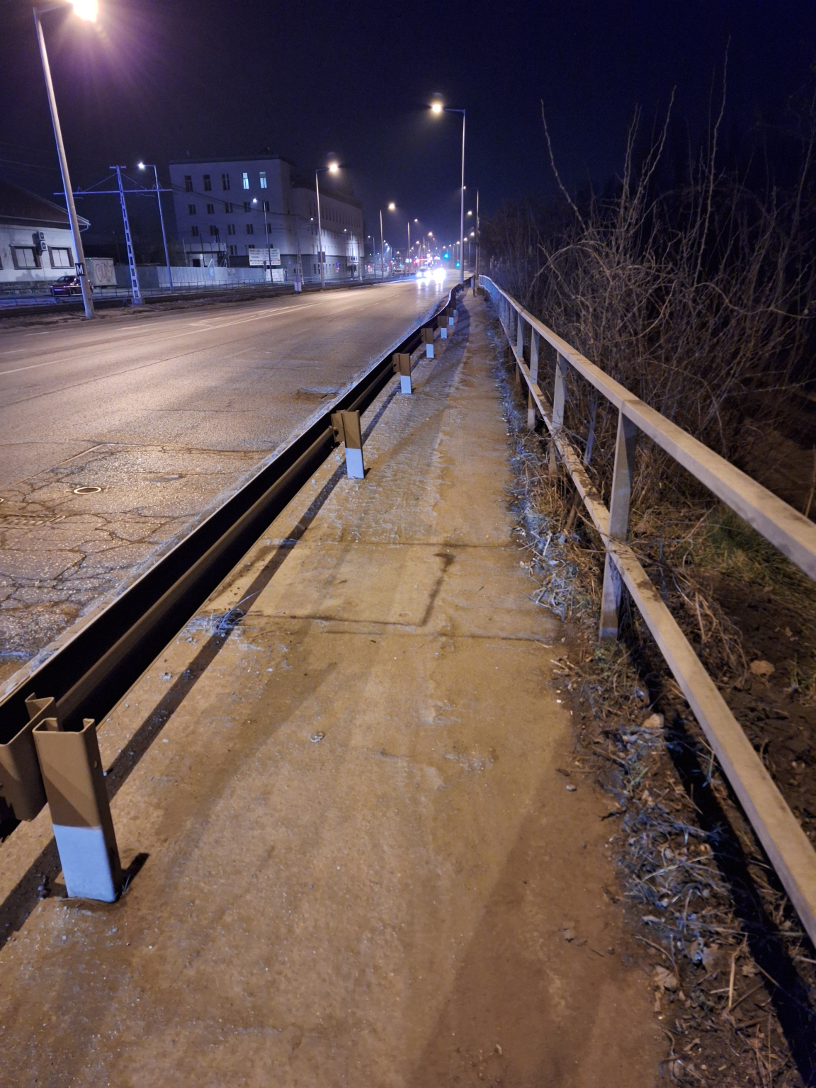Így válik egy járdaszakasz szinte használhatatlanná gyalogos és kerékpáros számára egyaránt. A járda felét a gaz, a sár foglalja el. Csatoltam egy 2012-es street view képet is. Akkor patika volt.