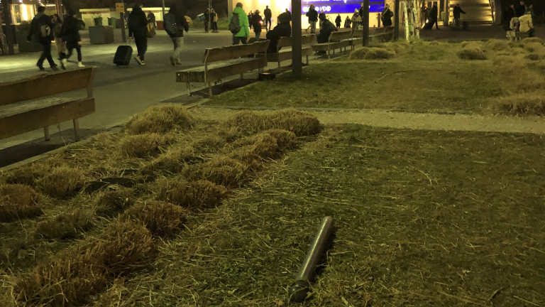 Az Etele téren a fűben hever egy poller. Nem tudom, hogy honnan hiányzik, de kérem, tegyék a helyére.