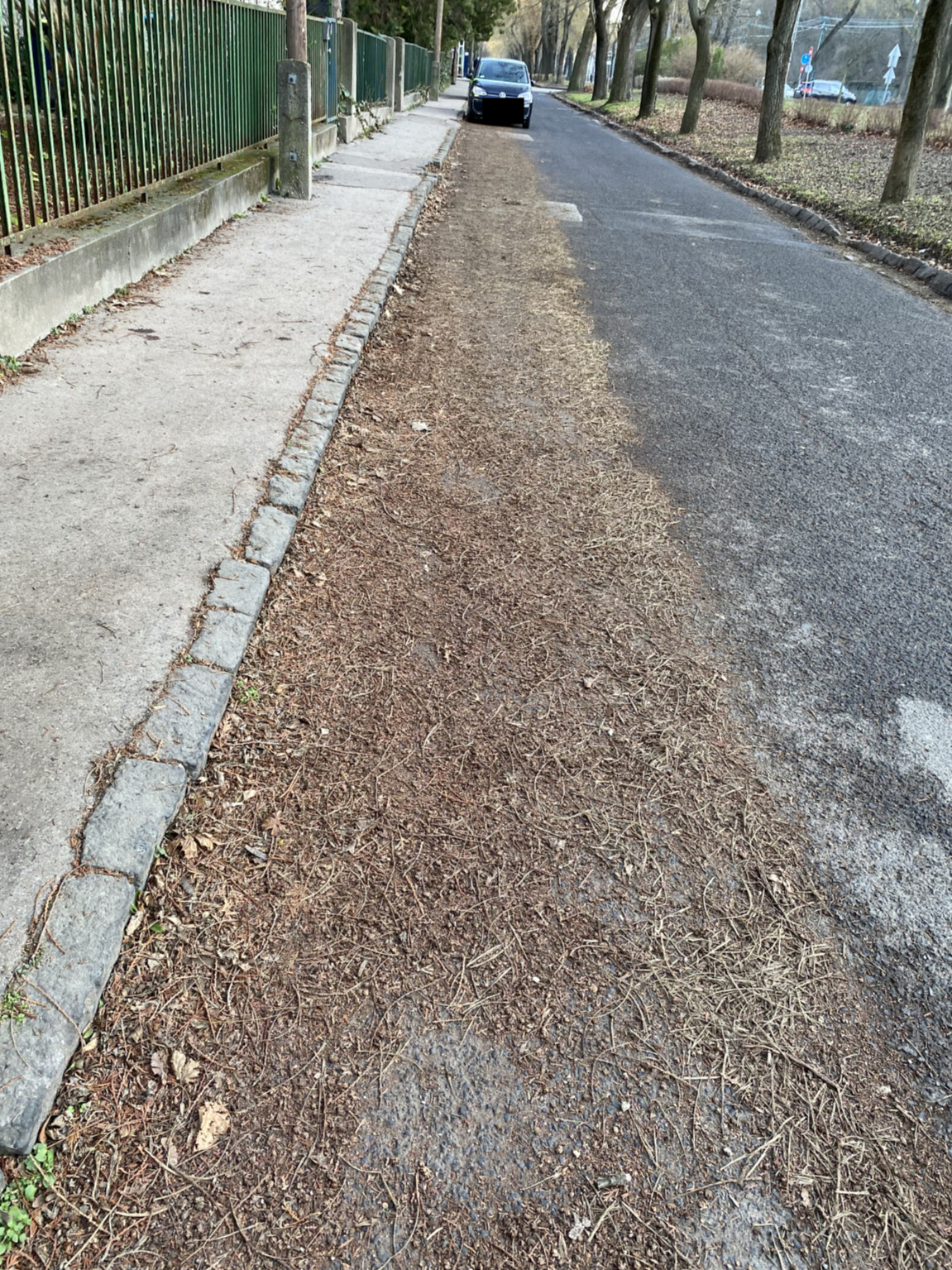 A bejelentésben szereplő szervízút az FKF illetékessége alá tartozik, nem az Önkormányzat felel a tisztán tartásáért.