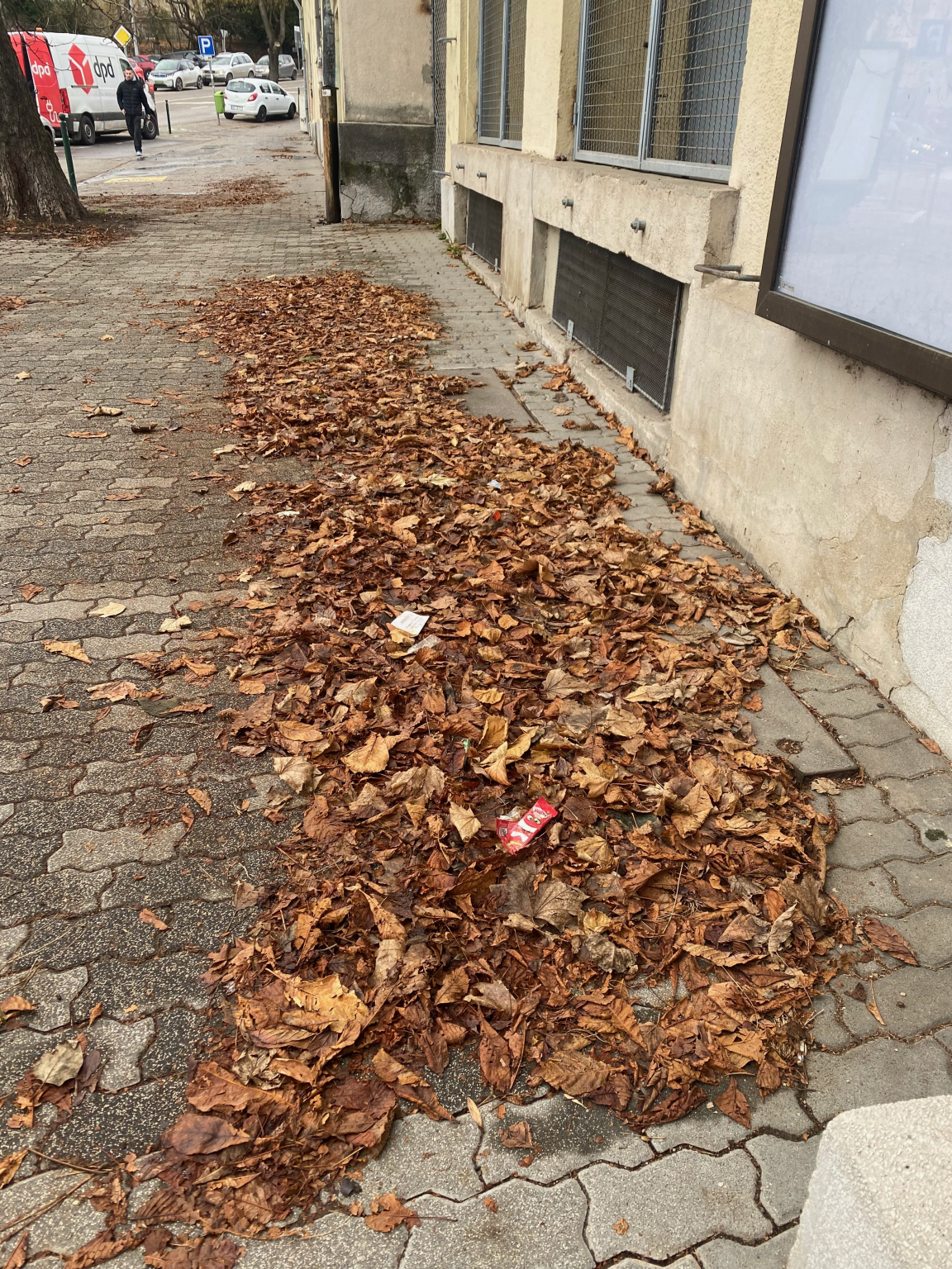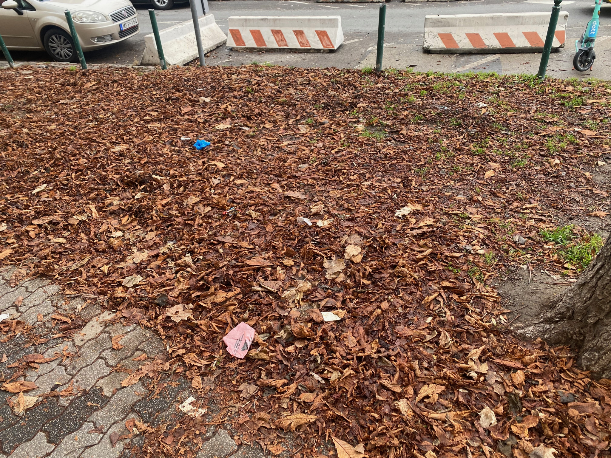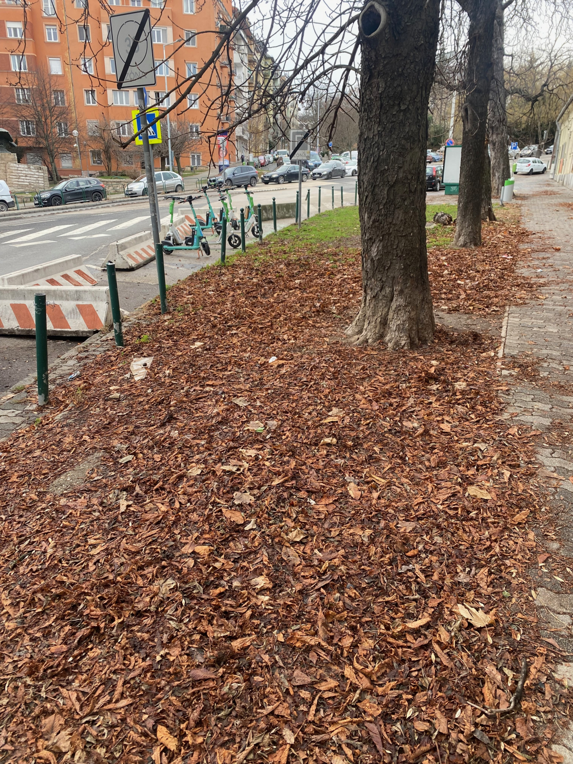 Szeretném jelezni, hogy az ősszel lehullott faleveleket eddig nem takarították el, és ezek között számos hulladék halmozódott fel, amit egyesek nem a szemetesekbe dobtak.