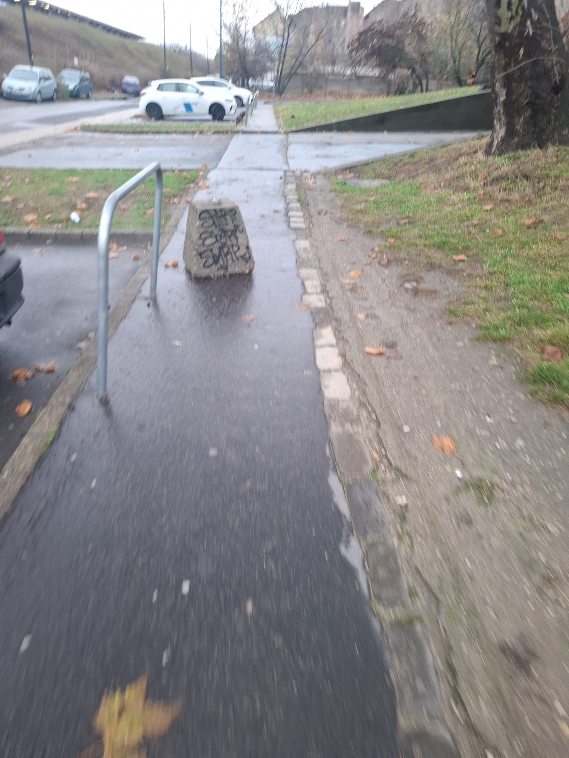 A XIV. Francia út 46-48 előtt a Bíróság hátsó része előtt betontömb a járdán 2 db. Egyik közvetlen a járdán. Babakocsisok, mozgássérültek nem férnek el tőle. Gyengénlátok még meg is sérülhetnek. A másik félrerakva a parkoló sarkába.