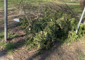 II kerület Kupeczky utca 9 előtt nagy méretű szemetek vannak a zöldsávban.
