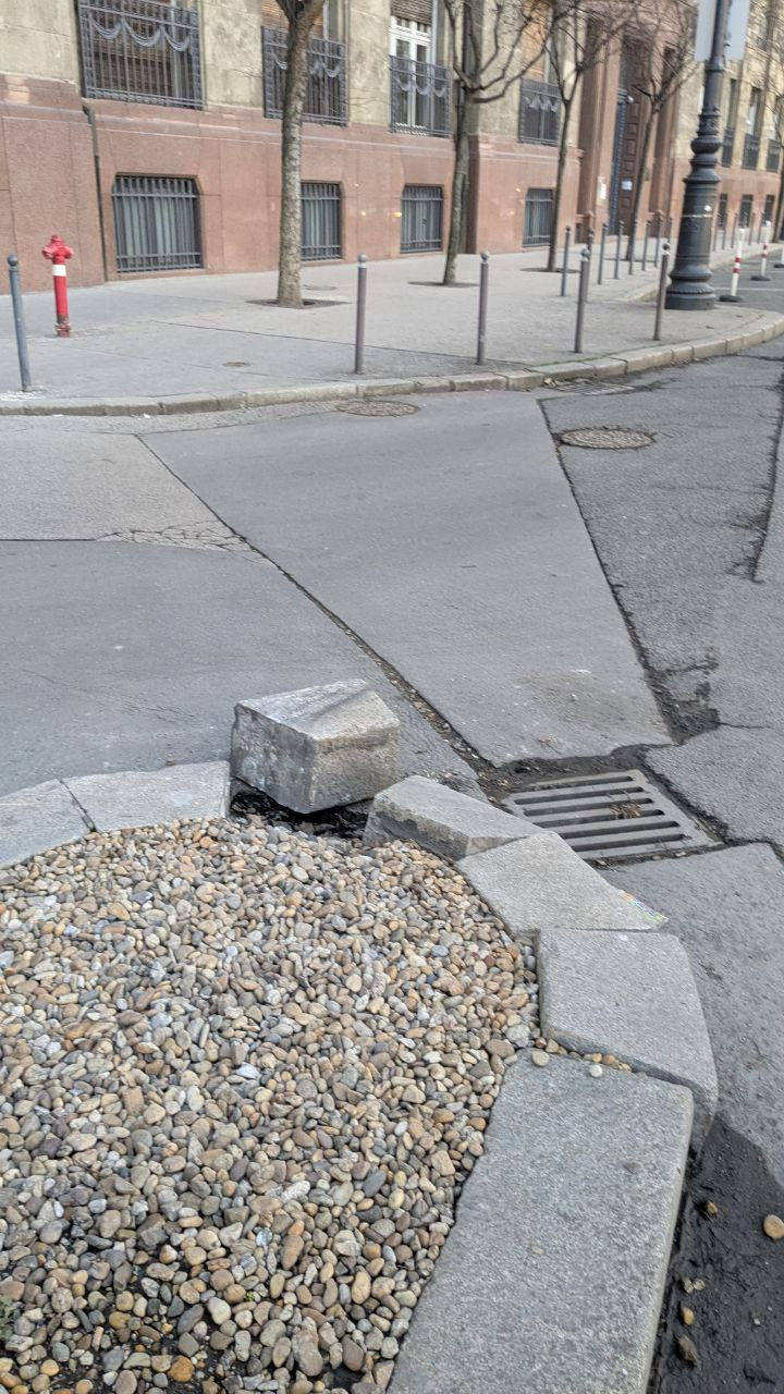 Törött szegélykő. Kérem, javítsák meg. Köszönöm.