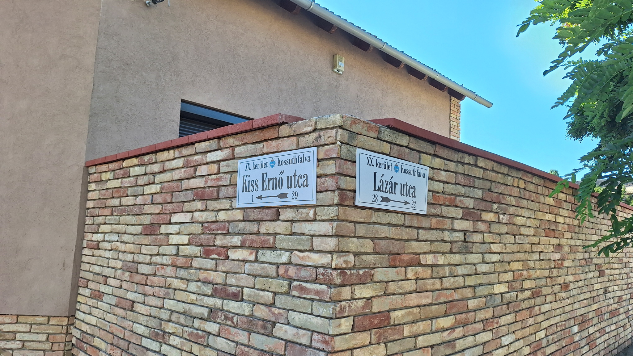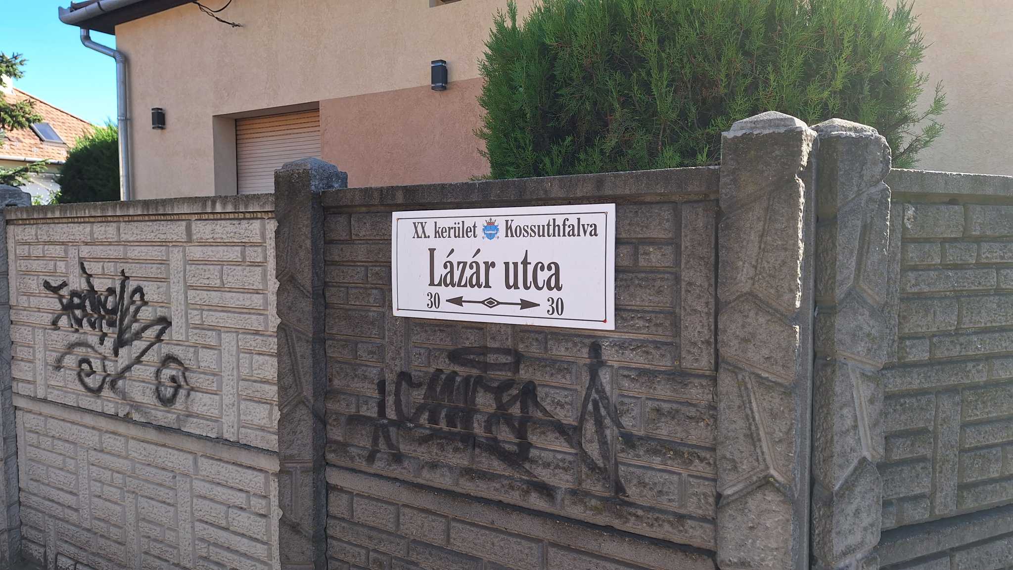 A Lázár és Kiss Ernő utca sarkán hiányoznak az utcanévtáblák.