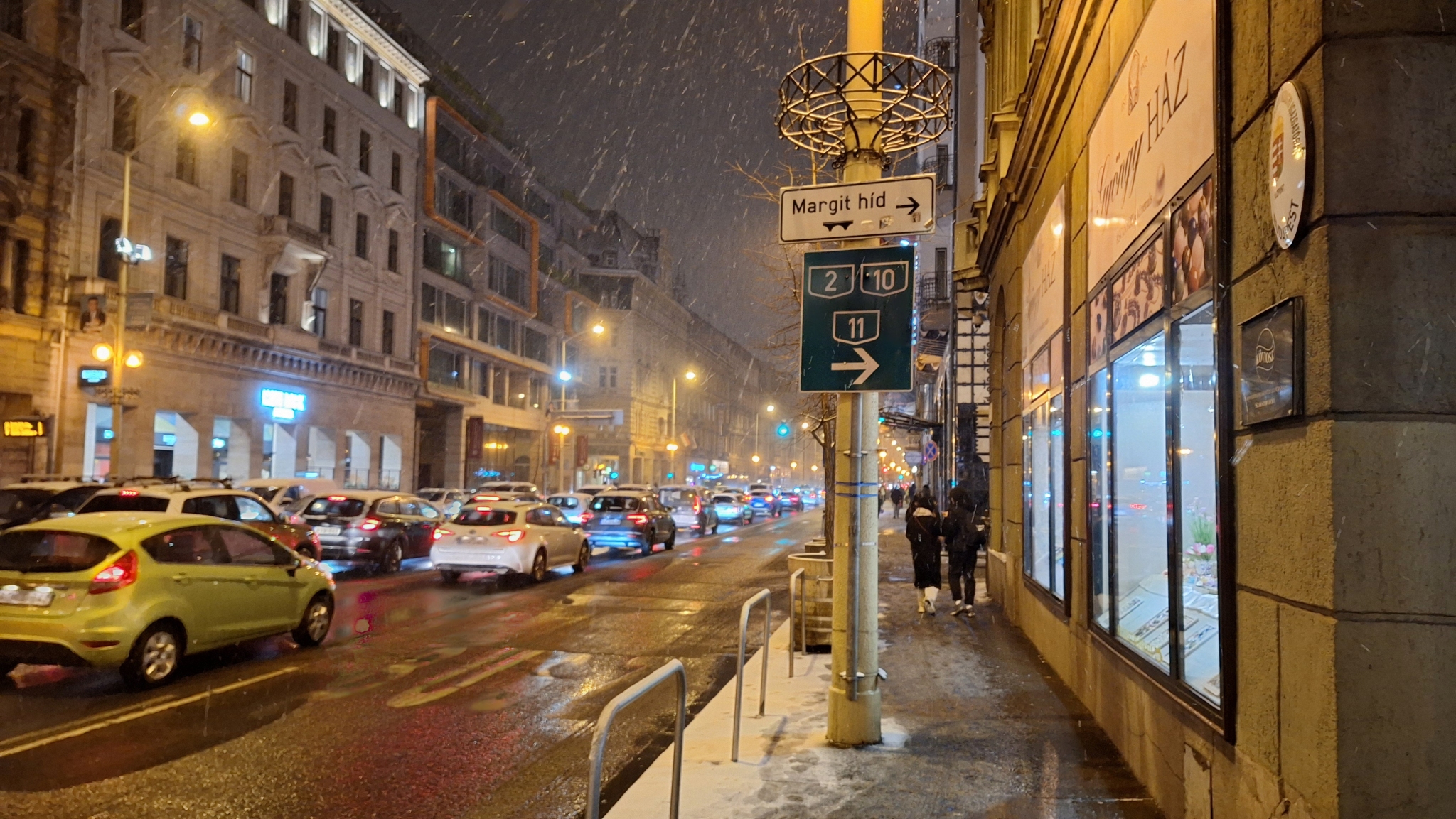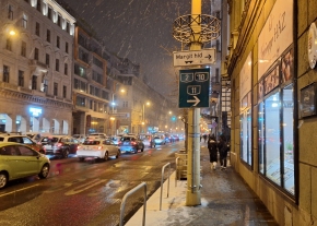 A Rákóczi út 41. előtti oszlopon lévő jelzőtáblák túl alacsonyan, majdnem fejmagasságban vannak elhelyezve, és kissé el is vannak fordulva.