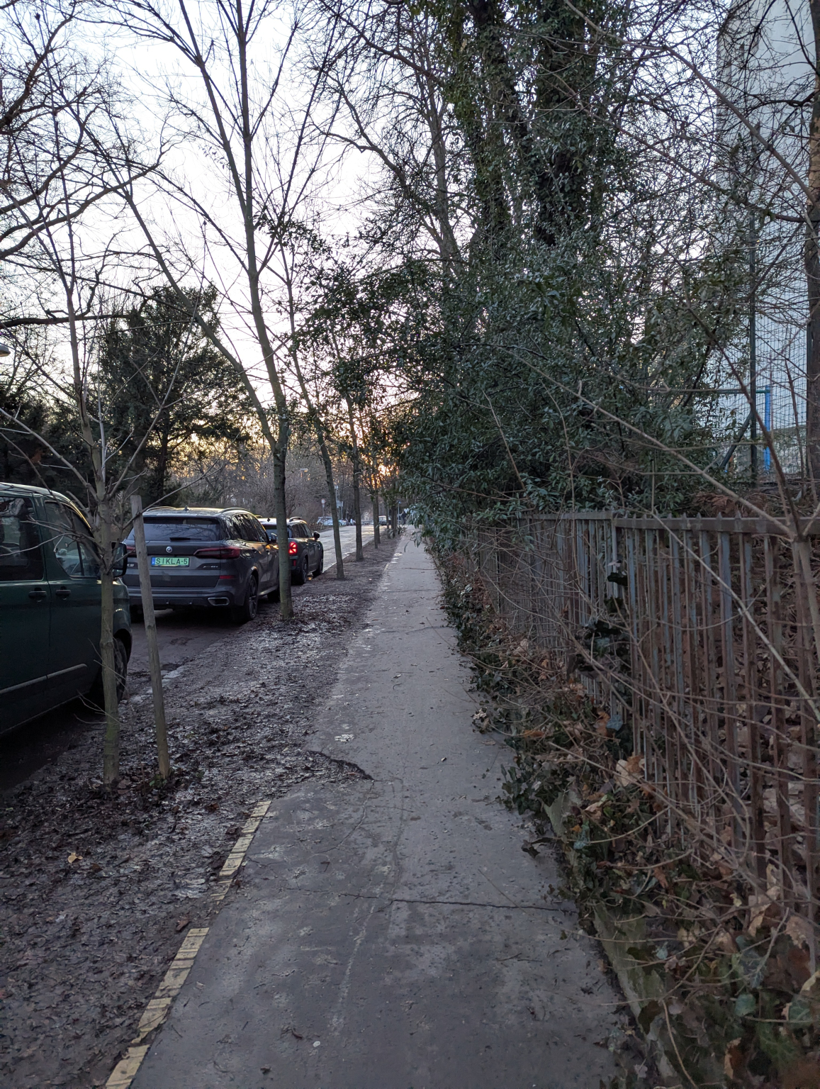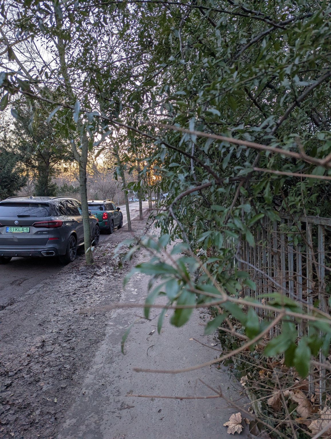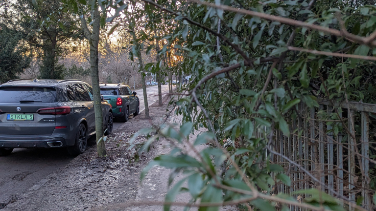 A járd fölé veszélyesen alacsonyan fejmagasságban faágak lógnak be.