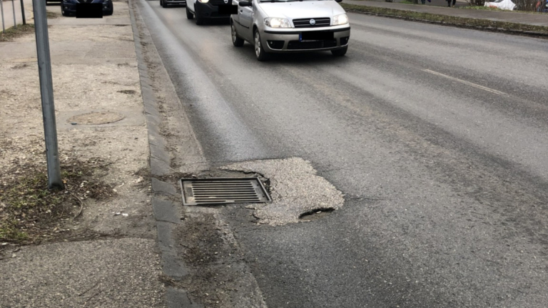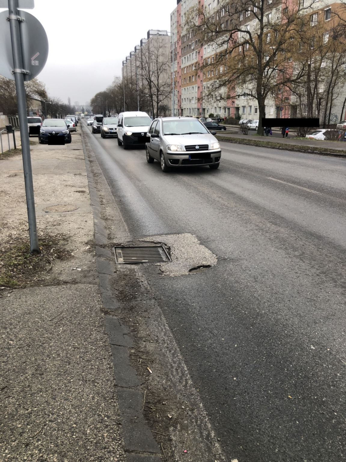 Csepel Ady Endre út 74. előtt egy megsüllyedt víznyelőrács és mellette kátyú van. A busszal áthaladva elég kellemetlen élmény volt.