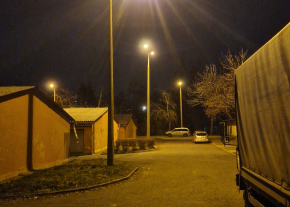 Köztéri lámpák nem világítanak az Erdősor utca végén található garázssor mögött. Összesen három darab lámpa nem világít, ha jól számoltam. Az egyik póznán az egyik oldali világít, képeken jól látszik.