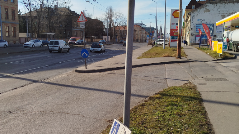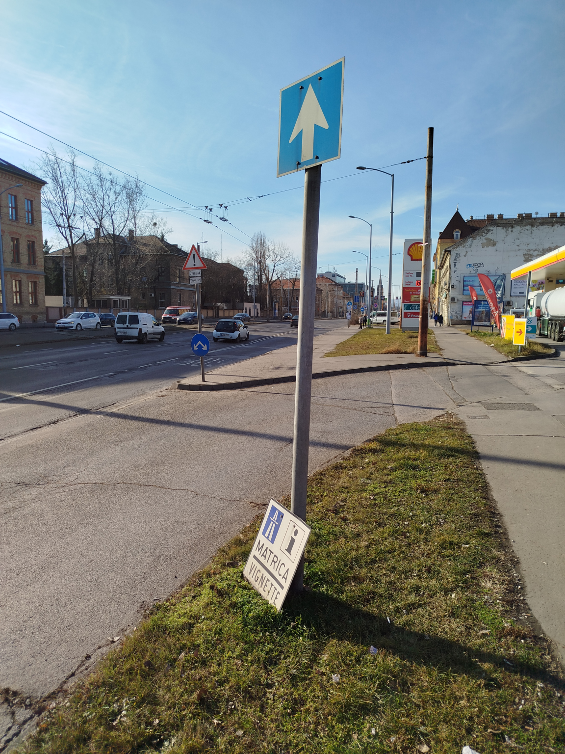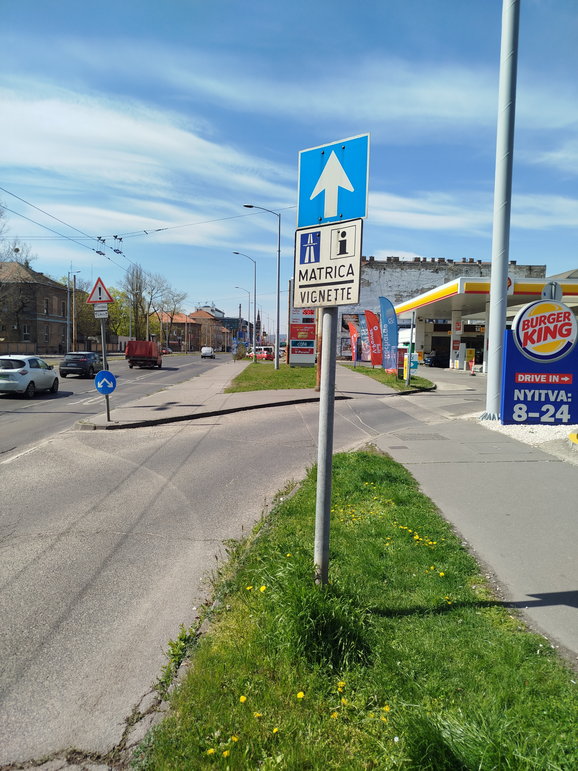 Lecsúszott matrica tábla a benzinkút előtt