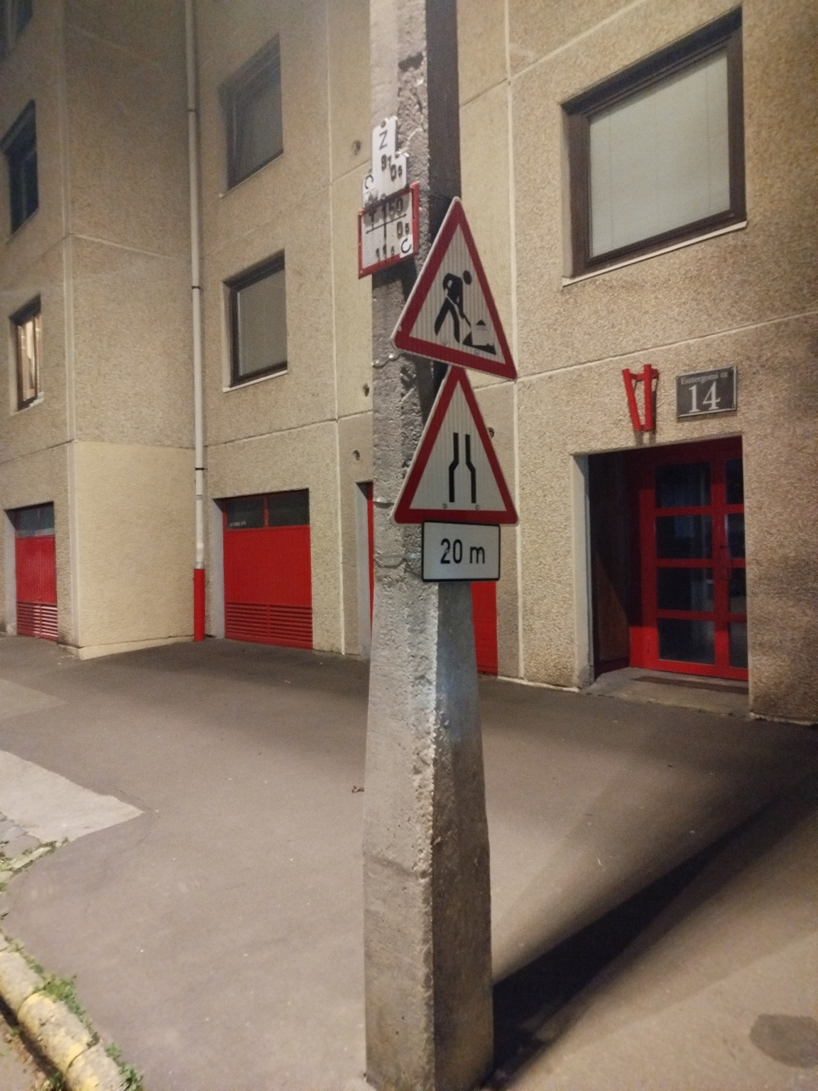 „Társaságunk a XIII. ker. Esztergomi úton kint felejtett ideiglenes jelzőtáblák eltávolítását elvégzi. A megvalósulásig szíves türelmét kérjük.”