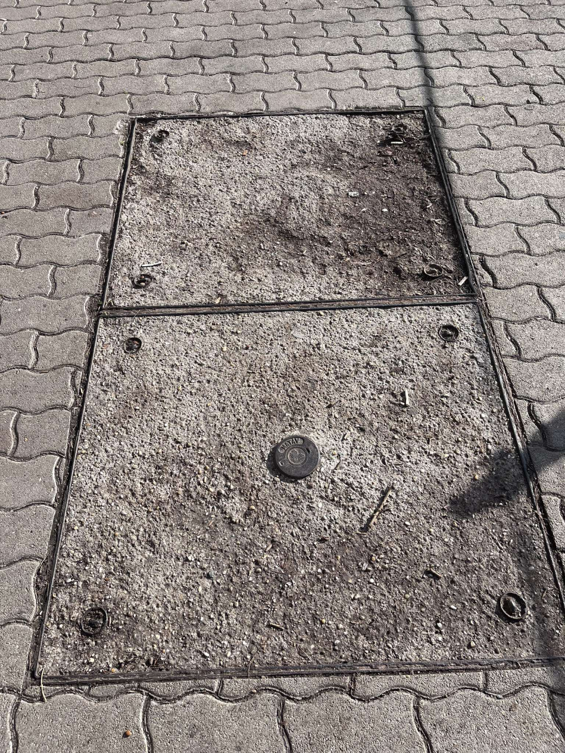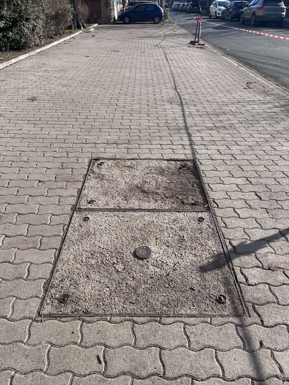 2 db tönkrement fedlap a Bajcsy Kórház Sörgyár utcai bejárata előtt , a Tűzoltósági területen van ha rááll egy tűzoltóautó tuti beszakad.