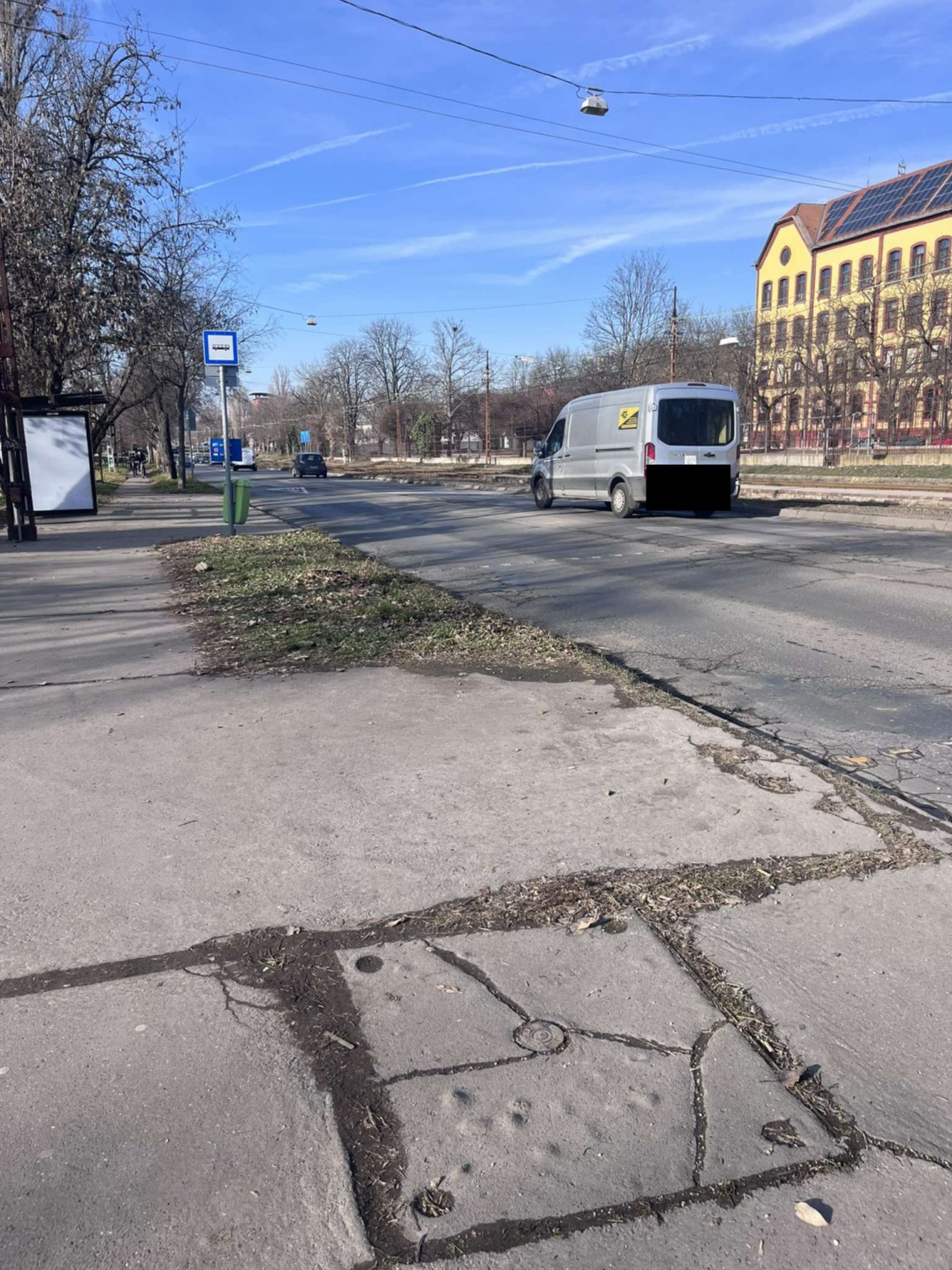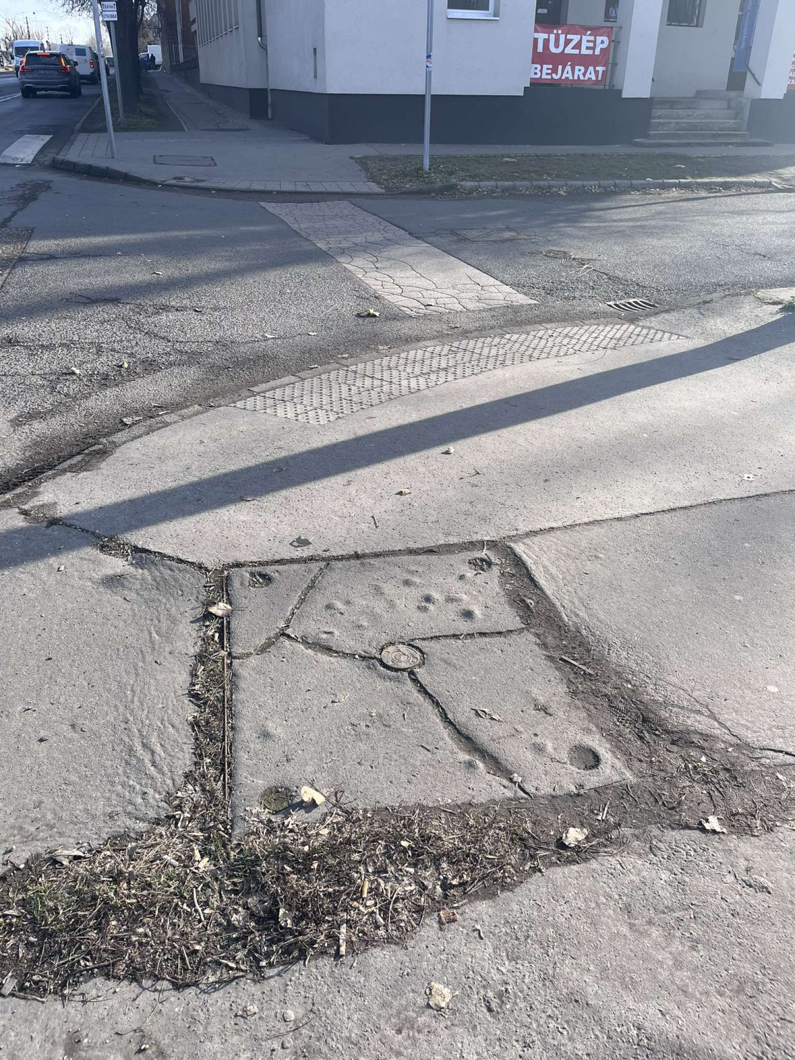 Megsüllyedt fedlap a buszmegállótól pár méterre