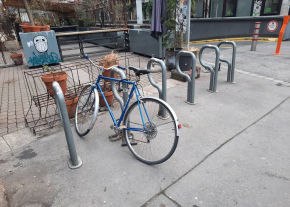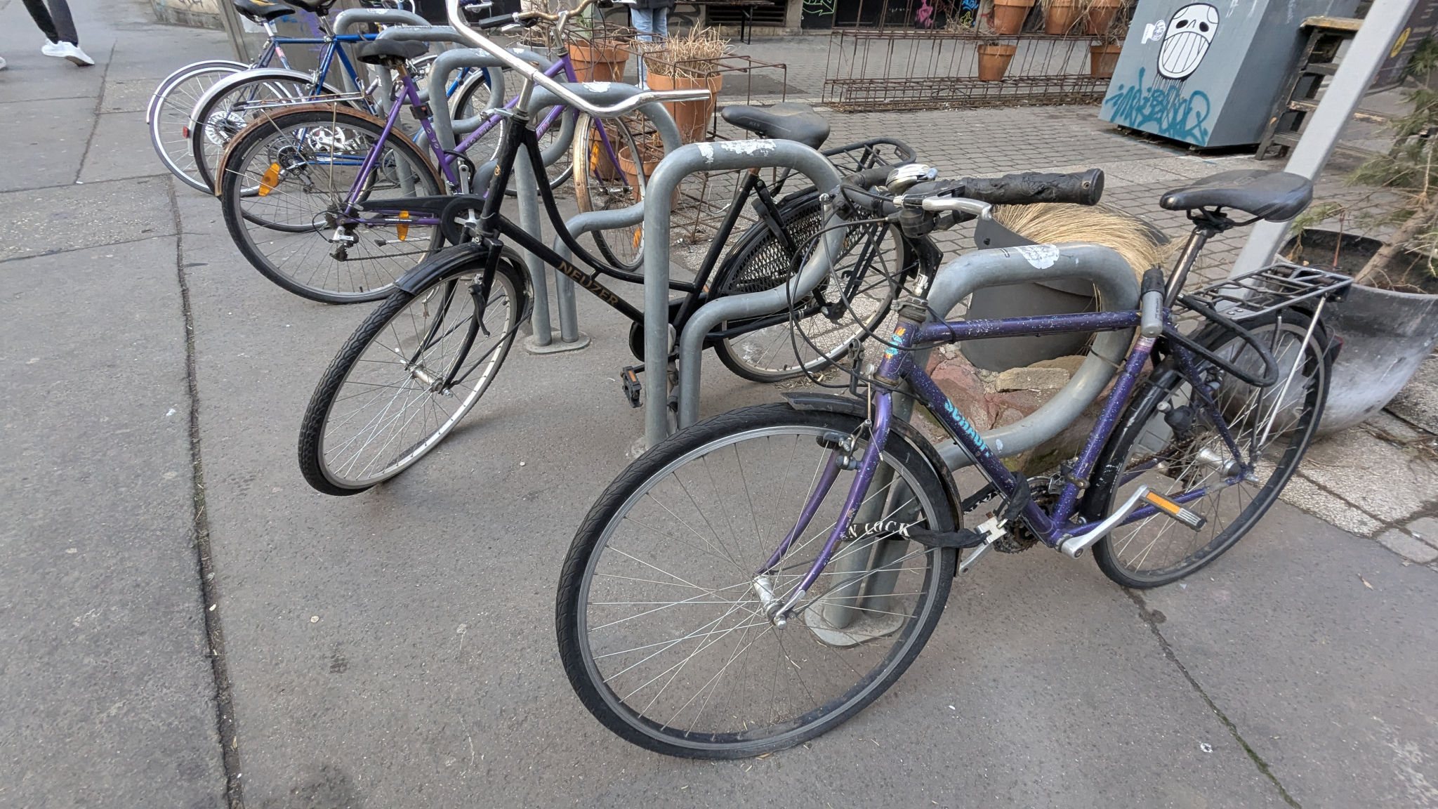 Hónapok óta gazdátlan elhagyott rozsdás lepukkant kerékpárok foglalják a helyet.