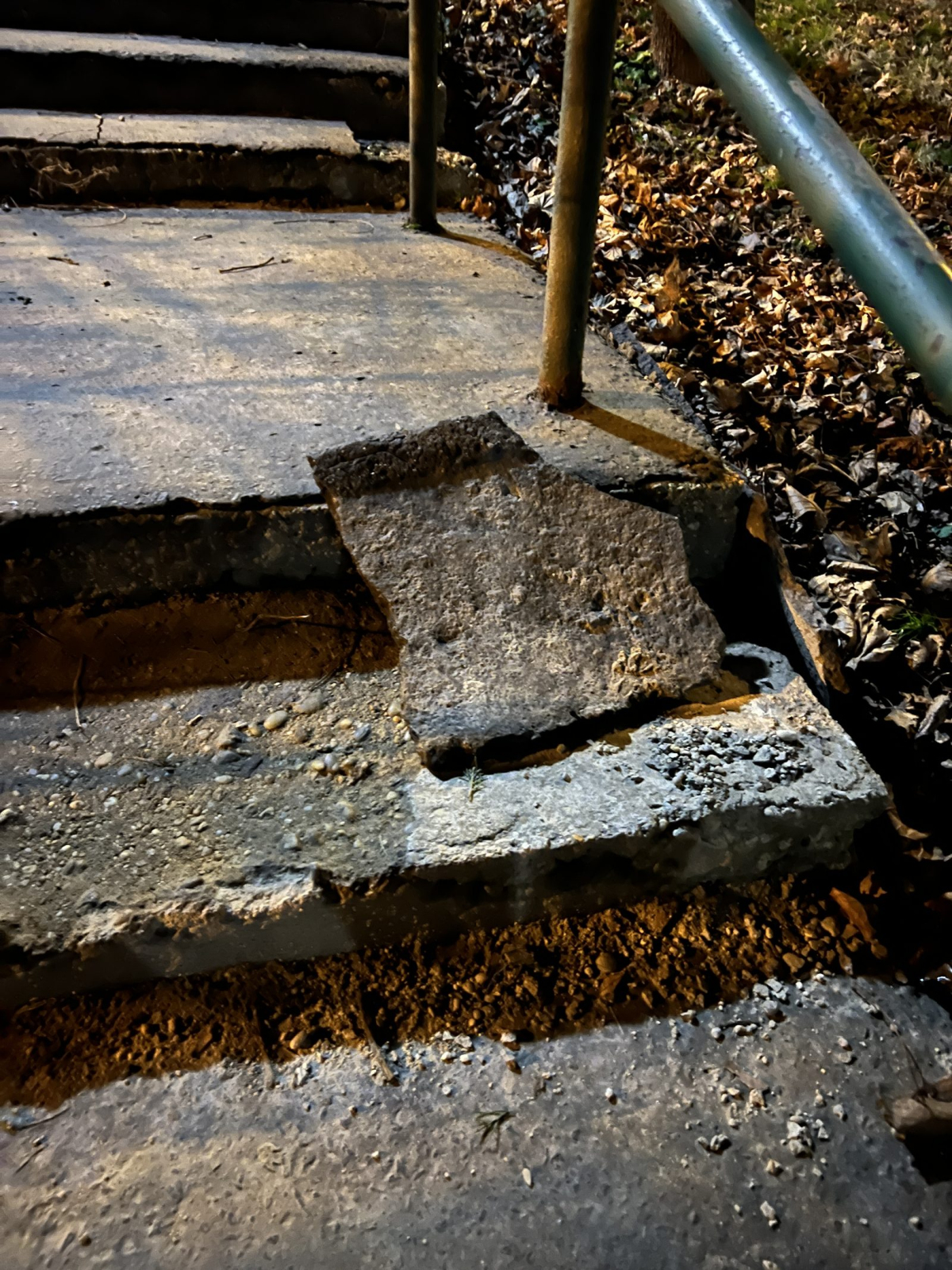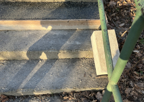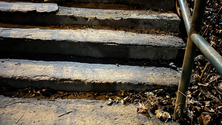 A Thomán István utcát a Csorna utcával összekötő lépcső több ponton is balesetveszélyes.