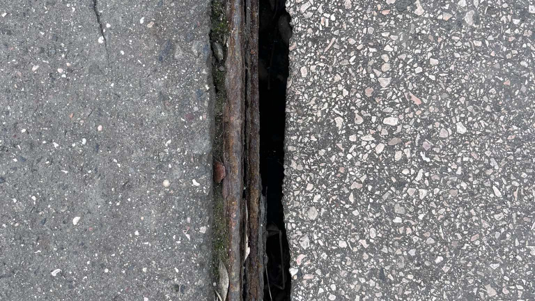 Dupla közműszekrény mellett megnyílt a burkolat, belátni a résen. telekomos Záhony utca 3