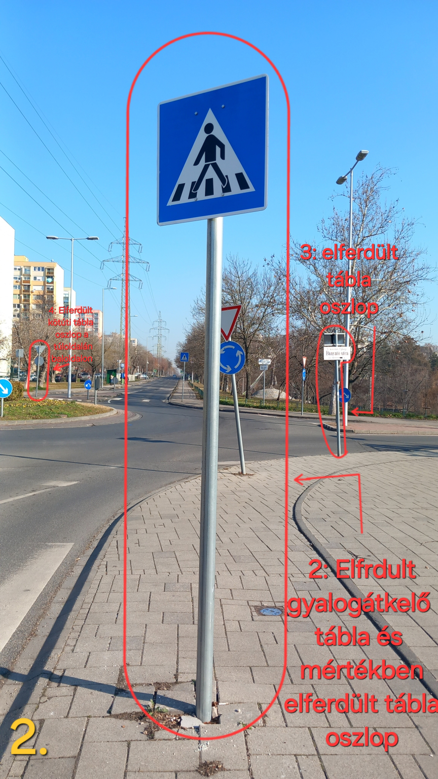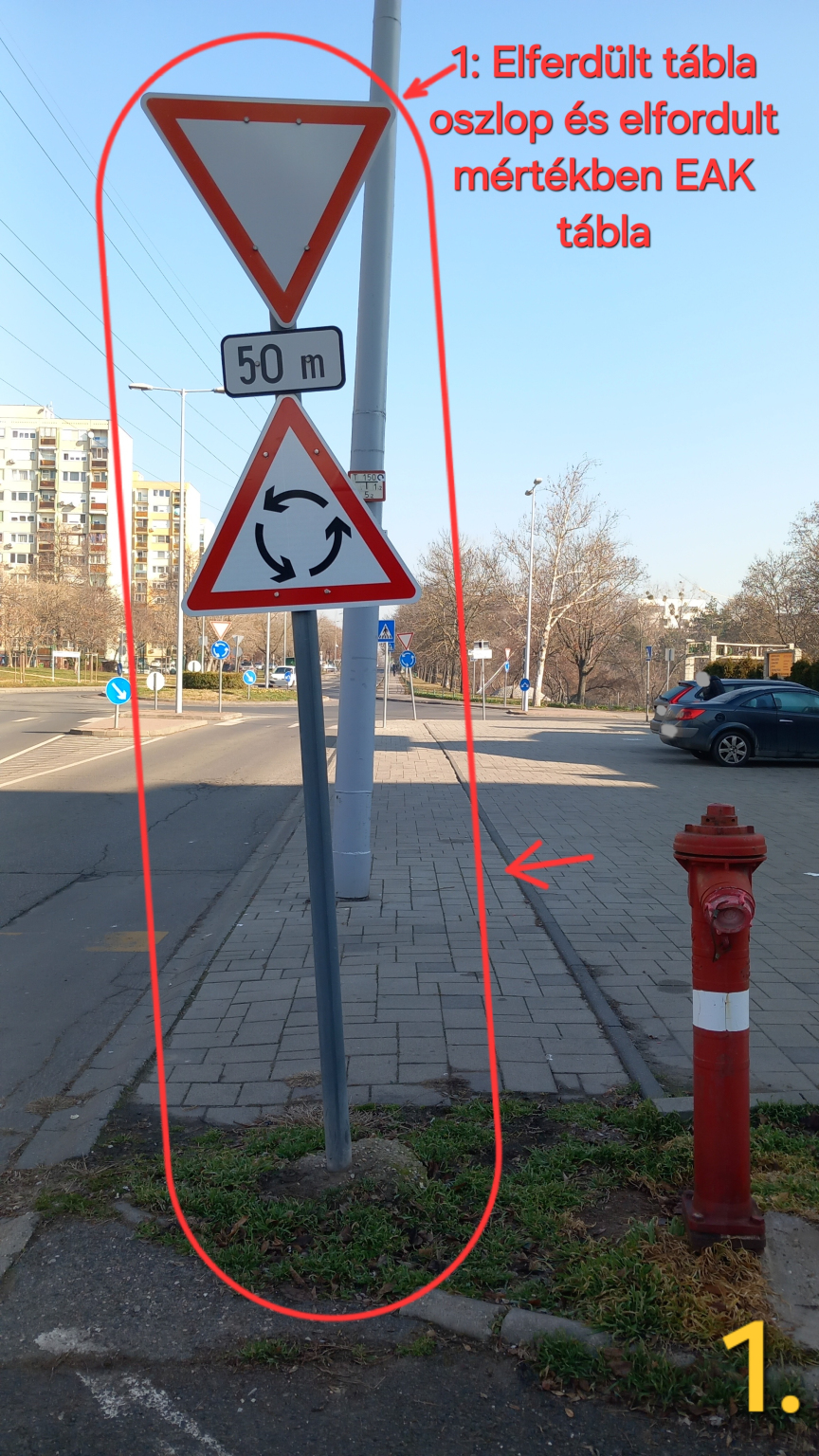 1. az oszlop dőlésének mértéke még elfogadható, a közúti jelző...