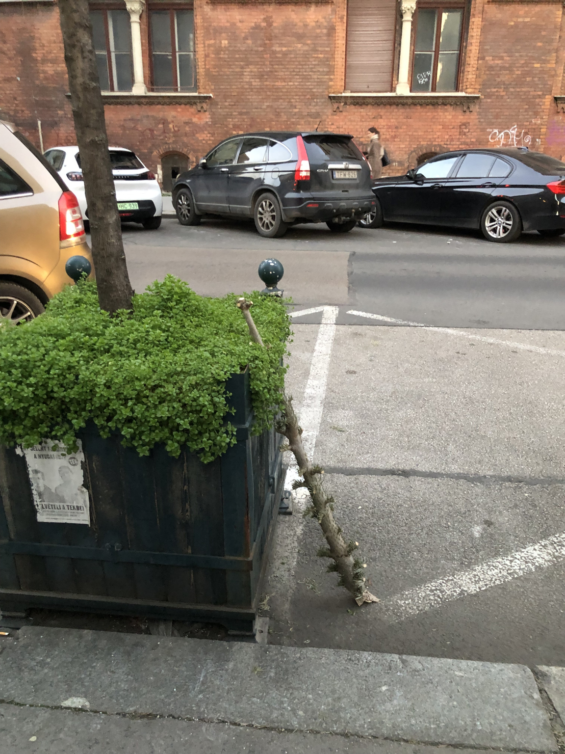 A Lónyay utcában egy fenyőfatörzset támasztottak ki.