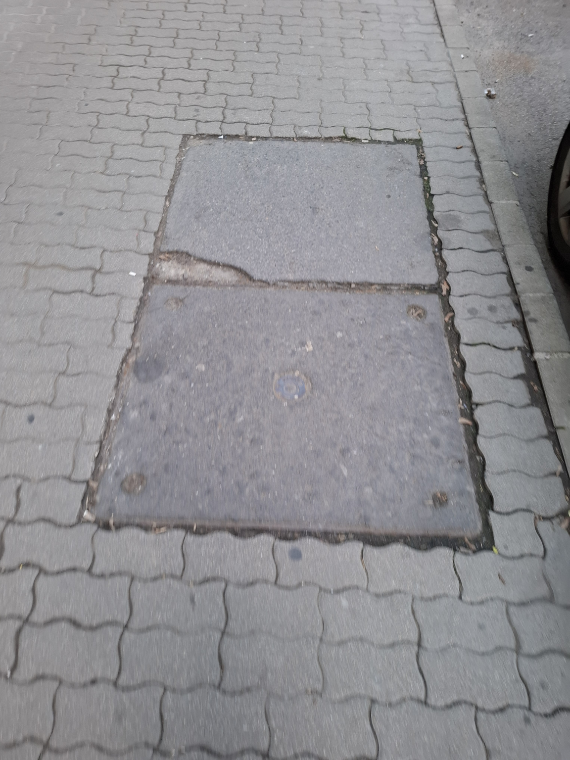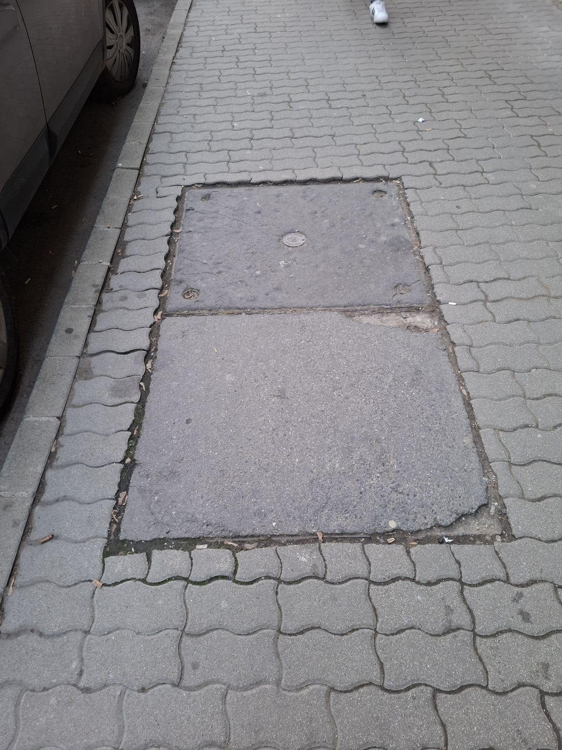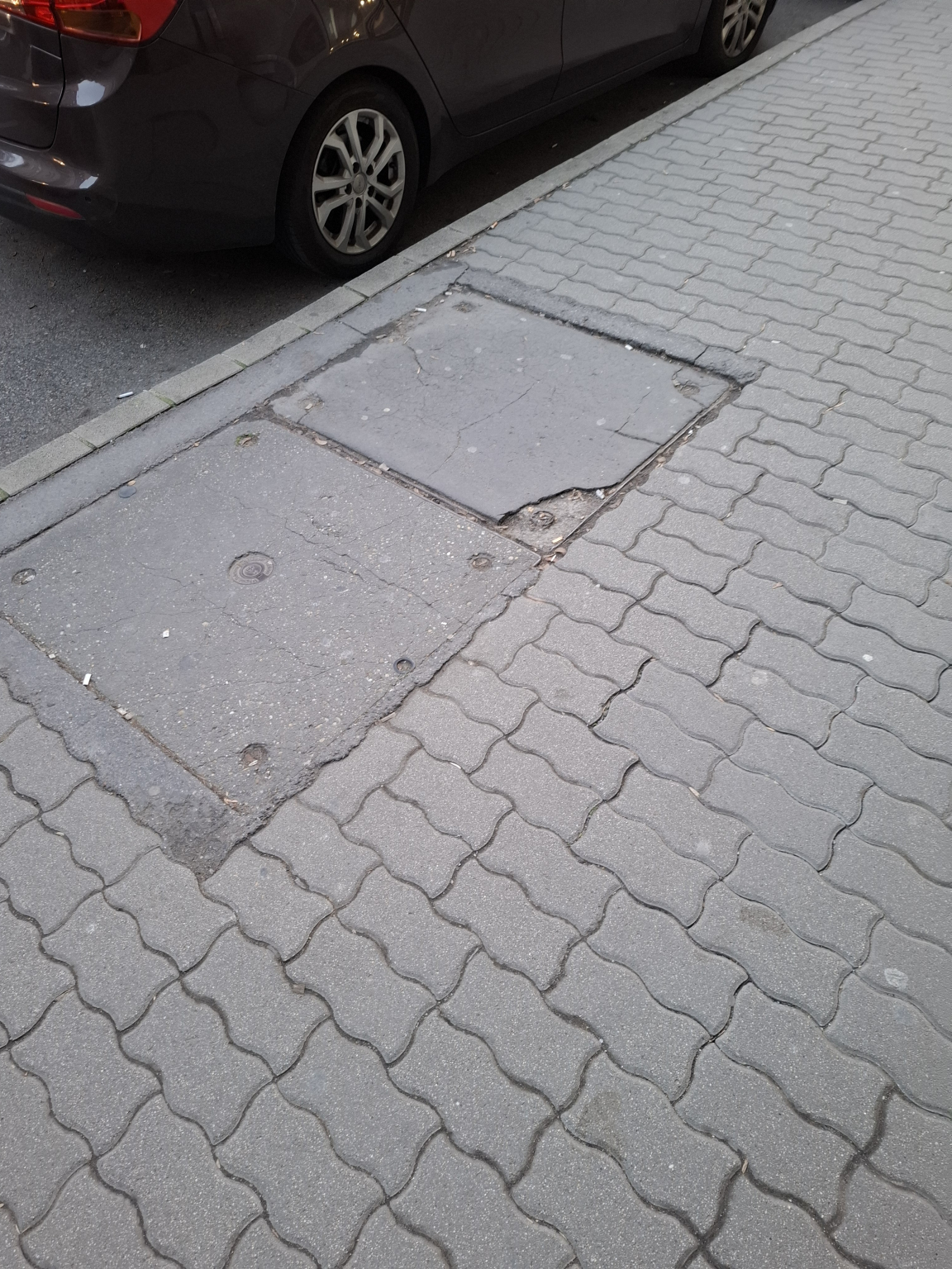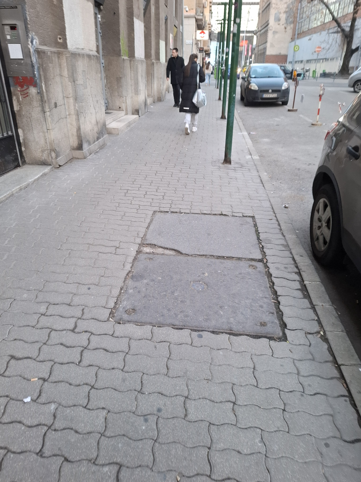 A Katona József utca 9 előtt 2 pár aknafedő (néhány méterre egymástól) szélei töröttek. A járdát felújították a környezetében, de a fedlapokat nem cserélték.
