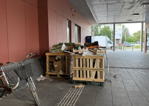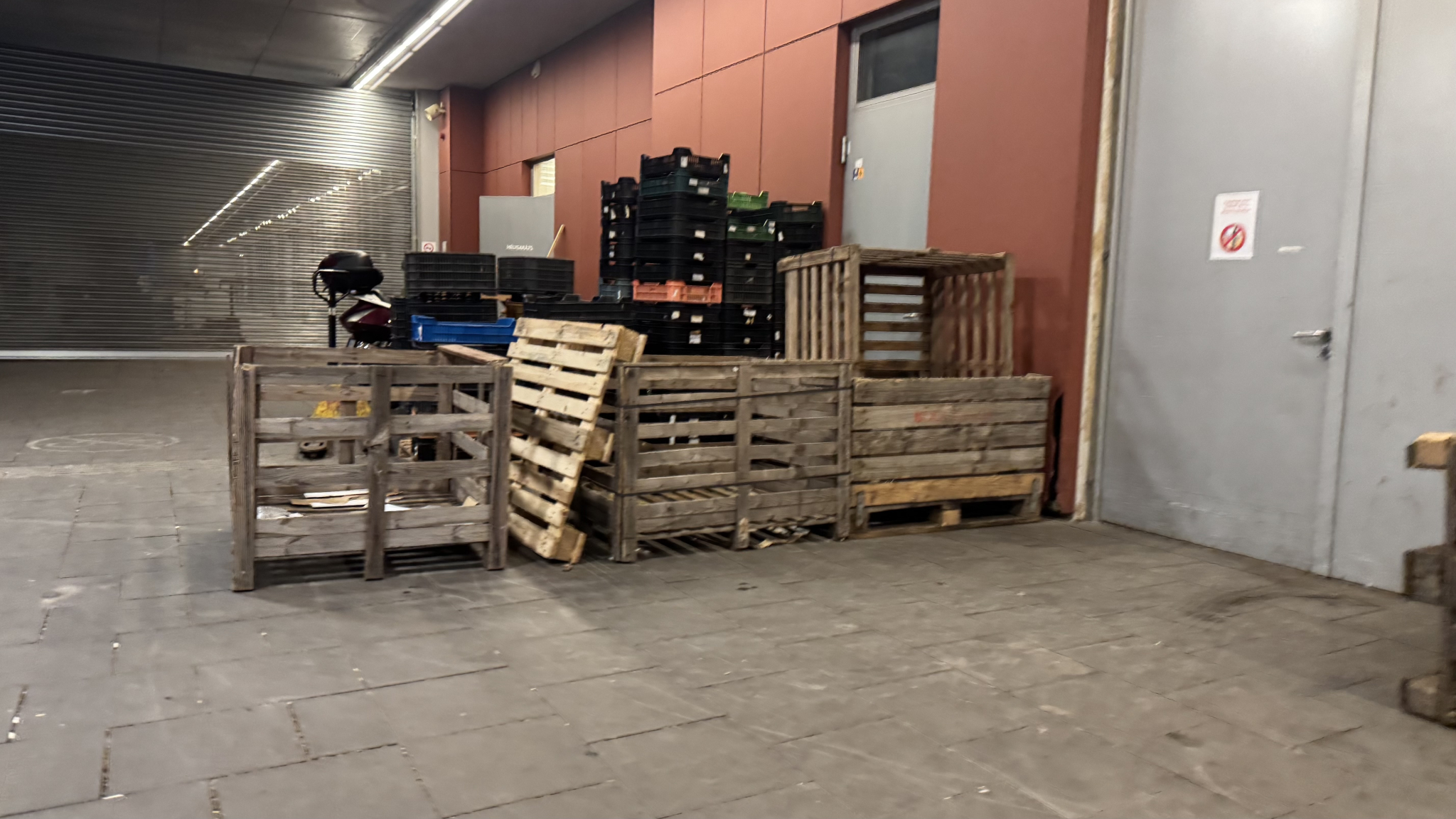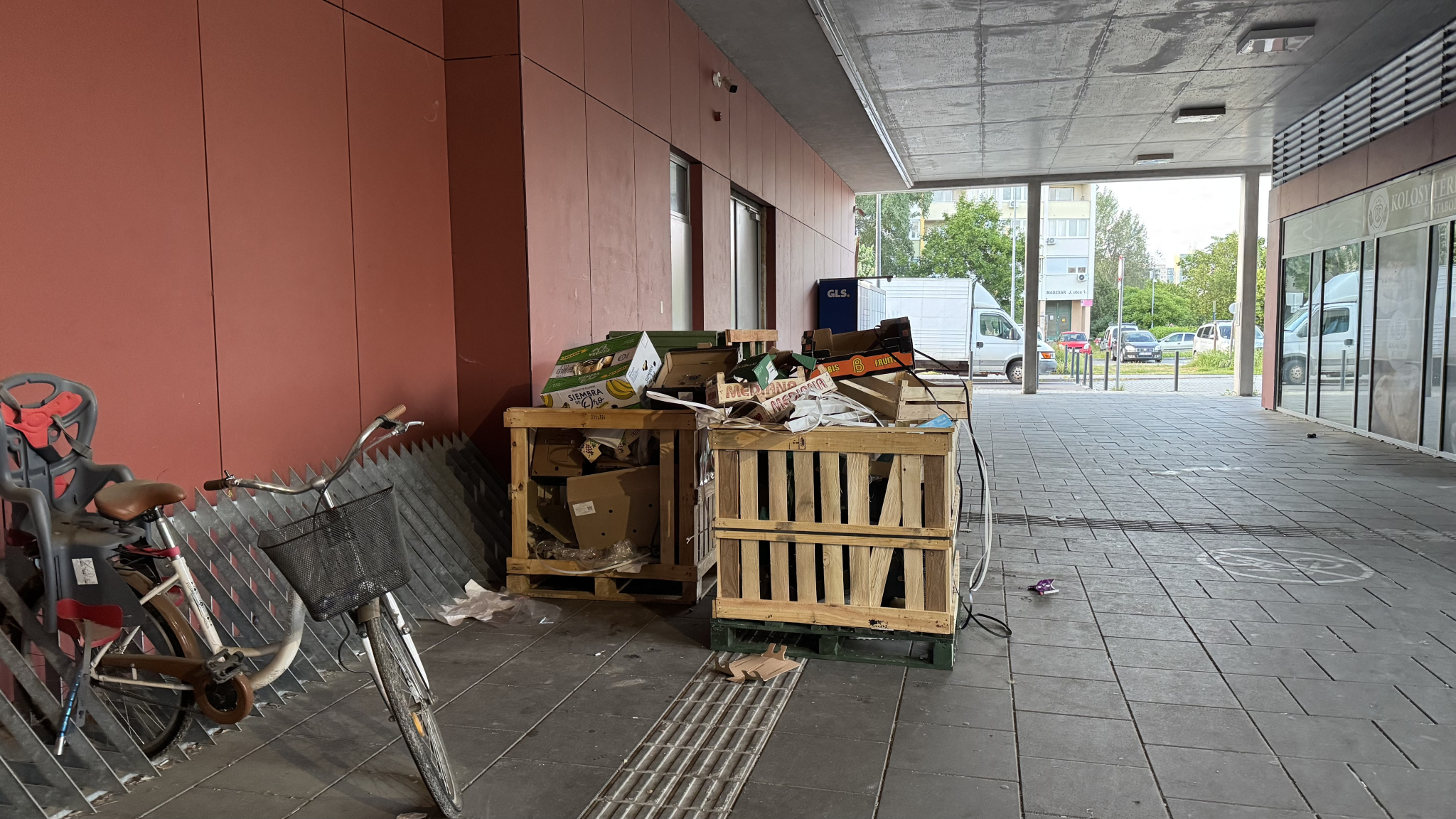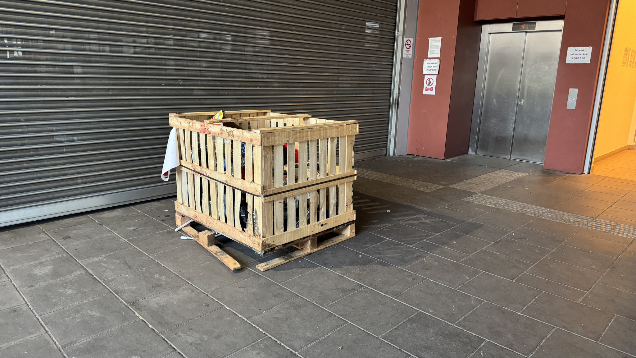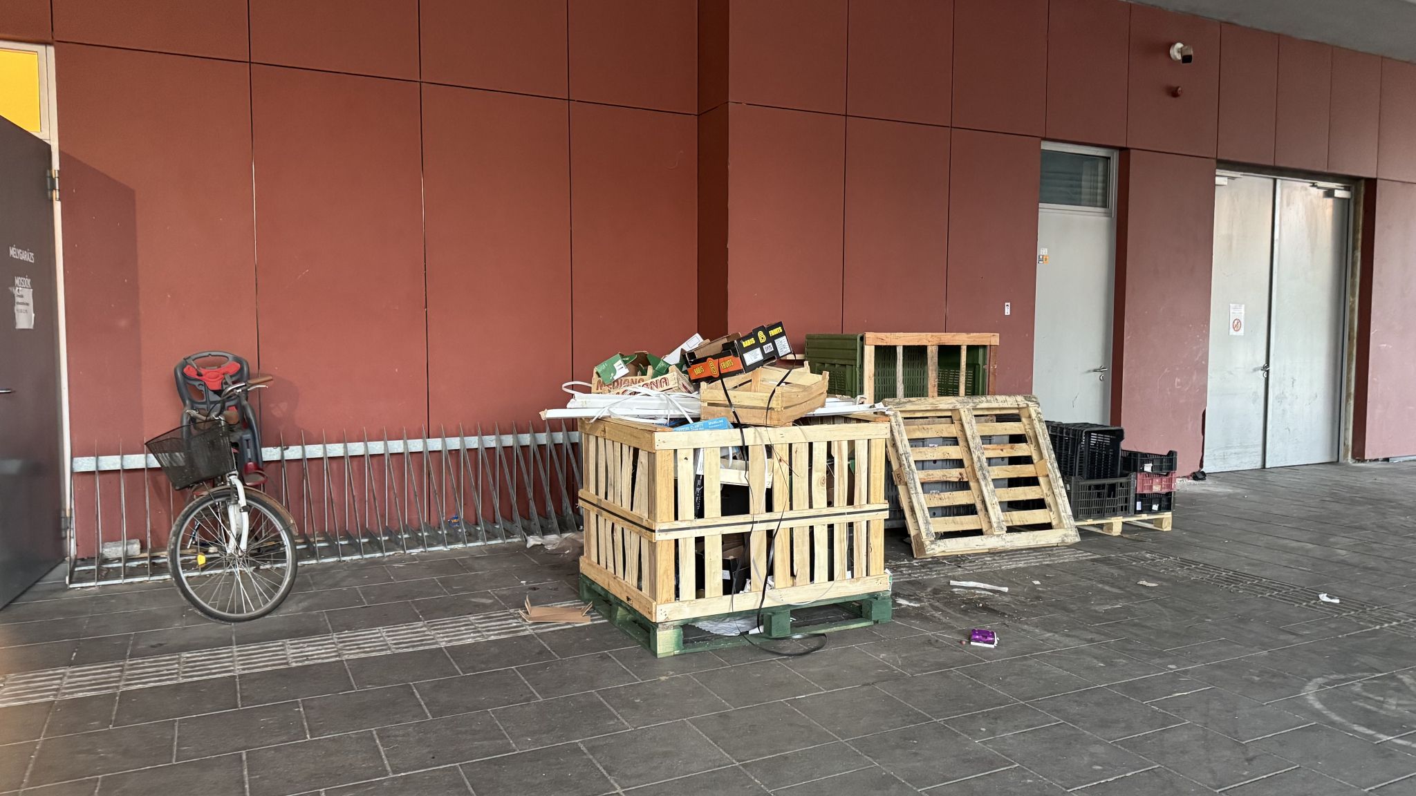 Nem gondolom, hogy egy piacnak így kellene kinéznie. Mindenhol dobozok raklapok a kerékpártároló előtt is. Szemetes az egész terület. A liftnél értem, hogy gondolom azért van szemetes a lift előtt, hogy ne menjenek be, de valljuk meg egyenesen nevetséges így ez a megoldás. Gondolom a liftet is be lehetne programozni vagy bármilyen normálisabb megoldást lehetne találni.