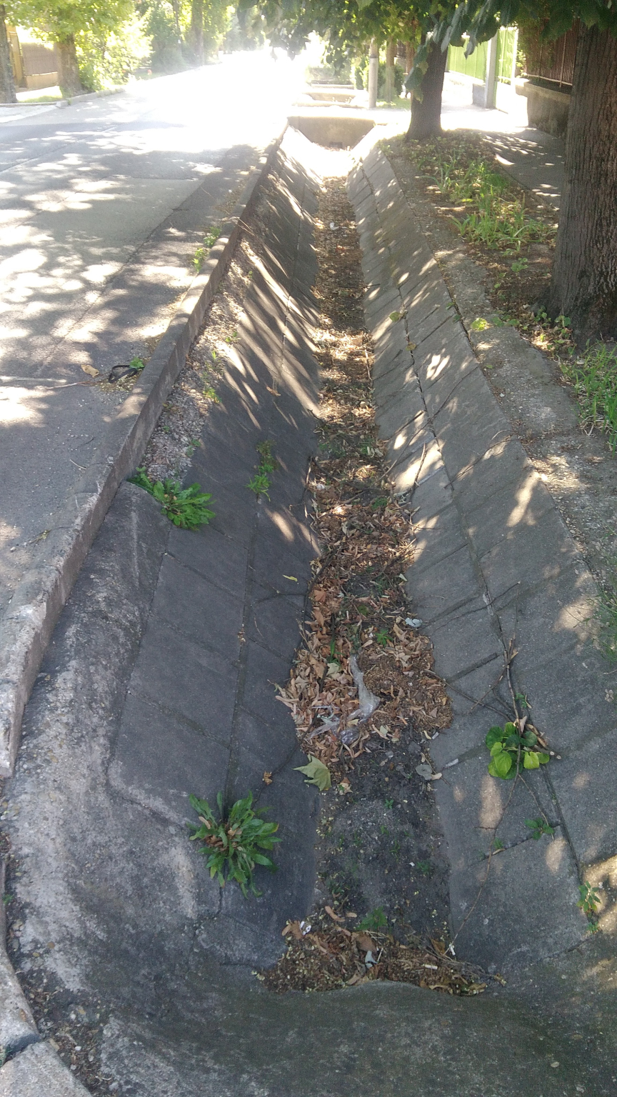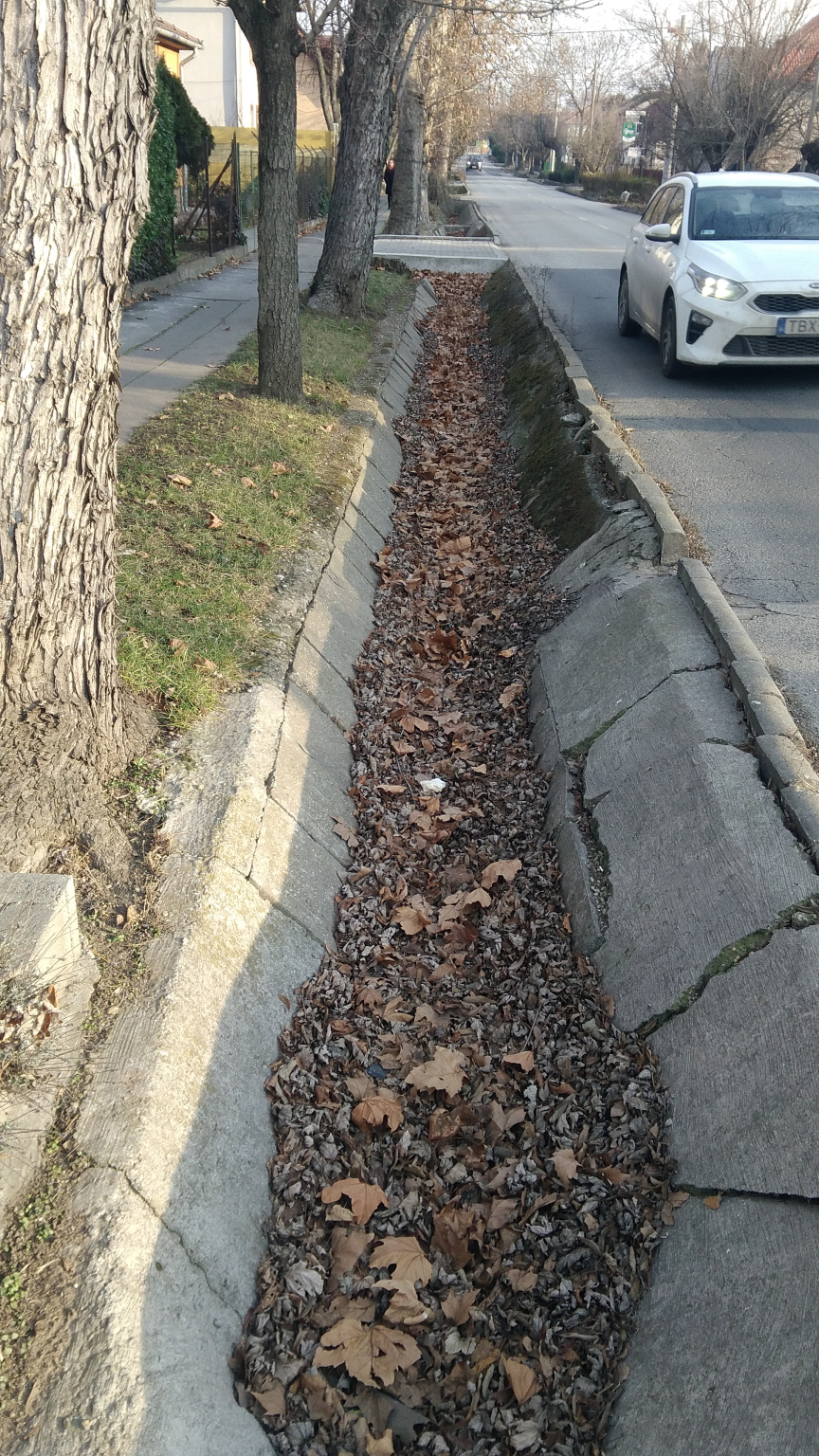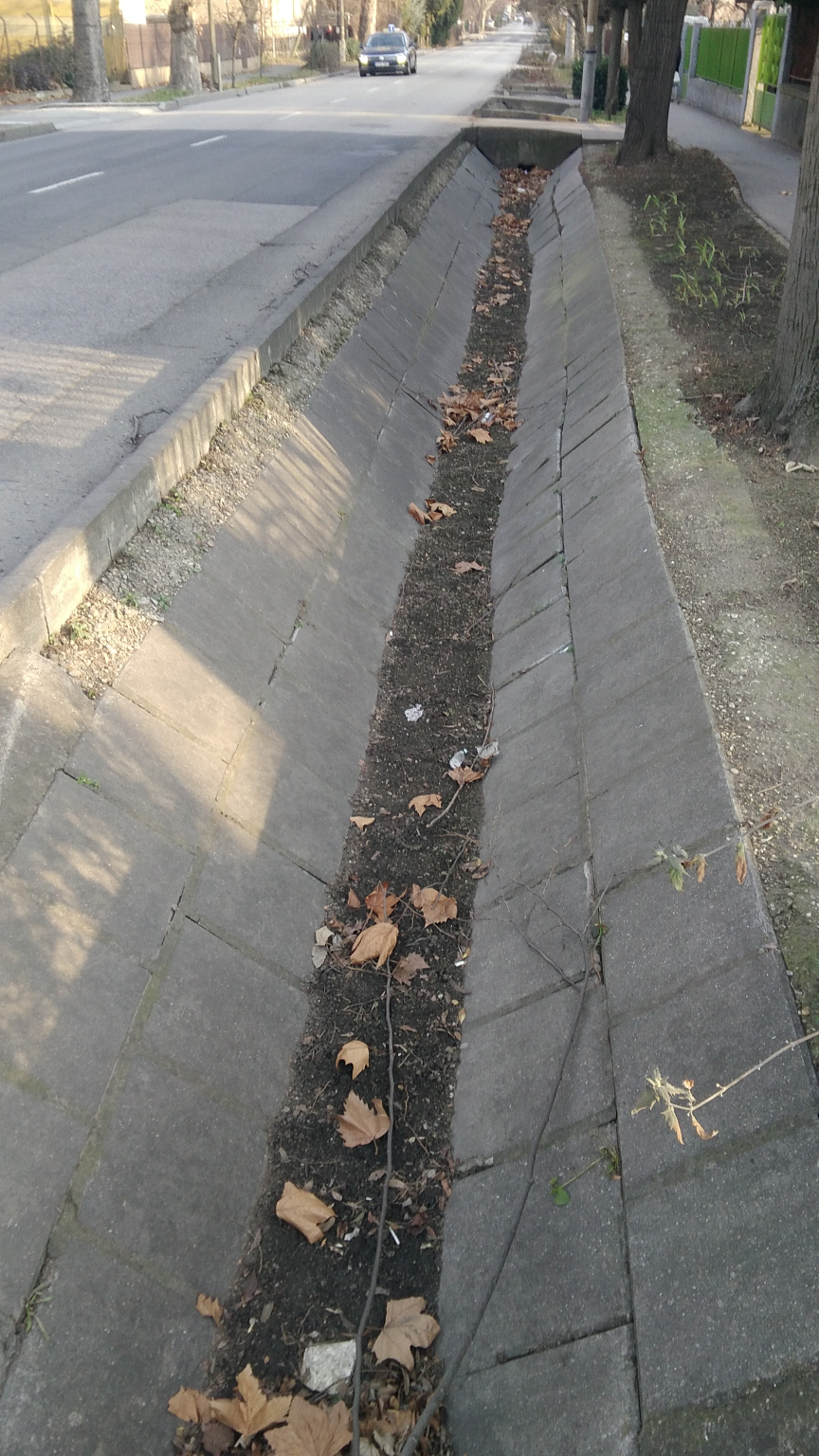 Kérem az illetékest, hogy a képen látható, az utca mindkét oldalán található csatornákat legyenek szívesek kitisztítani!